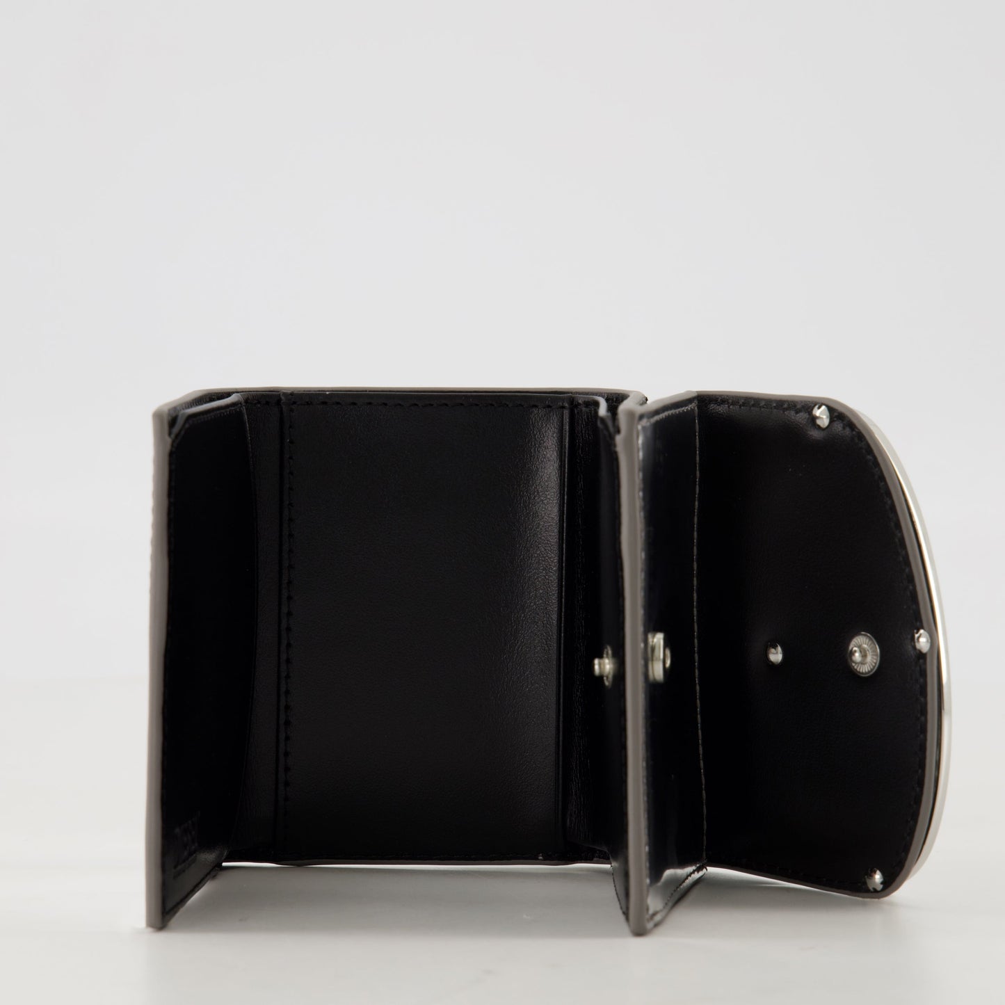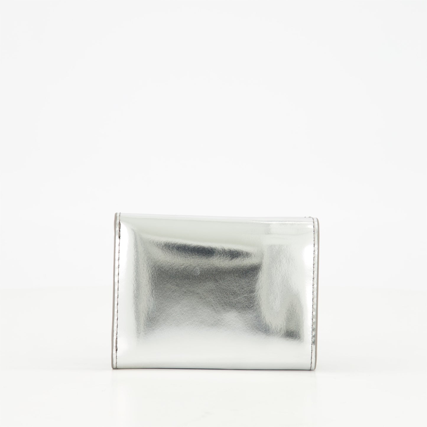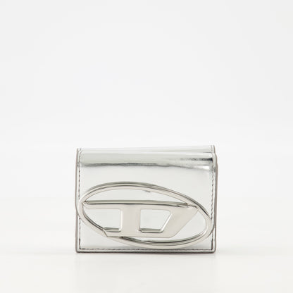 La billetera 1DR Tri Fold en plata, elaborada por Diesel, es un accesorio exquisito diseñado para aquellos que aprecian la refinación combinada con la practicidad. Hecha de cuero brillante con efecto espejo, esta billetera presenta una solapa con botón de presión, un logotipo ovalado en relieve y un diseño bien organizado que incluye un compartimento principal, un bolsillo para monedas con cierre a presión y ranuras para tarjetas. Su diseño compacto la convierte en una opción ideal para el uso diario, añadiendo un sutil brillo a tu atuendo. Experimenta la combinación perfecta de estilo y funcionalidad con esta elegante pieza.