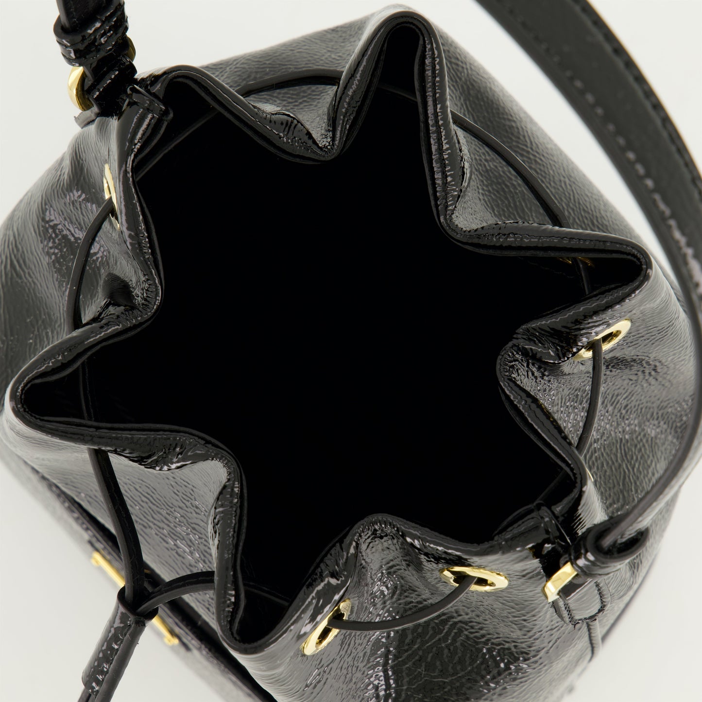Presentamos el Bolso Cubo de Charol Negro de Prada, un accesorio elegante de la Colección Primavera-Verano 2025 que combina sofisticación y funcionalidad sin esfuerzo. Confeccionado en resplandeciente charol, este bolso cuenta con un cierre de cordón para un almacenamiento seguro, mientras que su correa de hombro ajustable y desmontable ofrece opciones de transporte versátiles. Un asa fija y el icónico logo triangular esmaltado añaden toques distintivos de Prada, y los bolsillos exteriores con cremallera ofrecen comodidad adicional. El interior está forrado con nylon decorado con un estampado de logo, asegurando un toque final lujoso. Realza tu atuendo con este exquisito accesorio, diseñado para destacar.