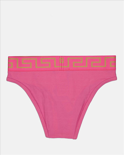 Pink Bikini Bottoms, Versace Bikini, Luxury Beachwear, Medusa Greca, Elegant Bikini