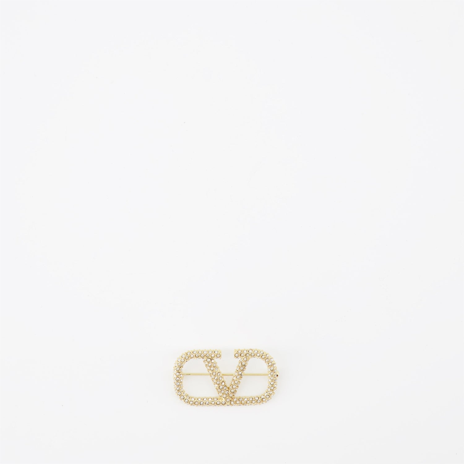 El broche Vlogo en metal dorado presenta un clásico cierre, adornado con brillantes cristales Swarovski®. Esta pieza exquisita, parte de la colección Primavera-Verano 2025, refleja una elegancia atemporal y una artesanía precisa. Ideal para cualquier ocasión, el diseño llamativo ofrece un giro moderno a un accesorio clásico, convirtiéndolo en un imprescindible para tu colección de joyas.