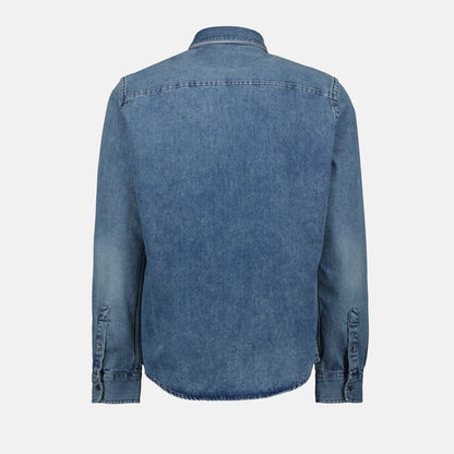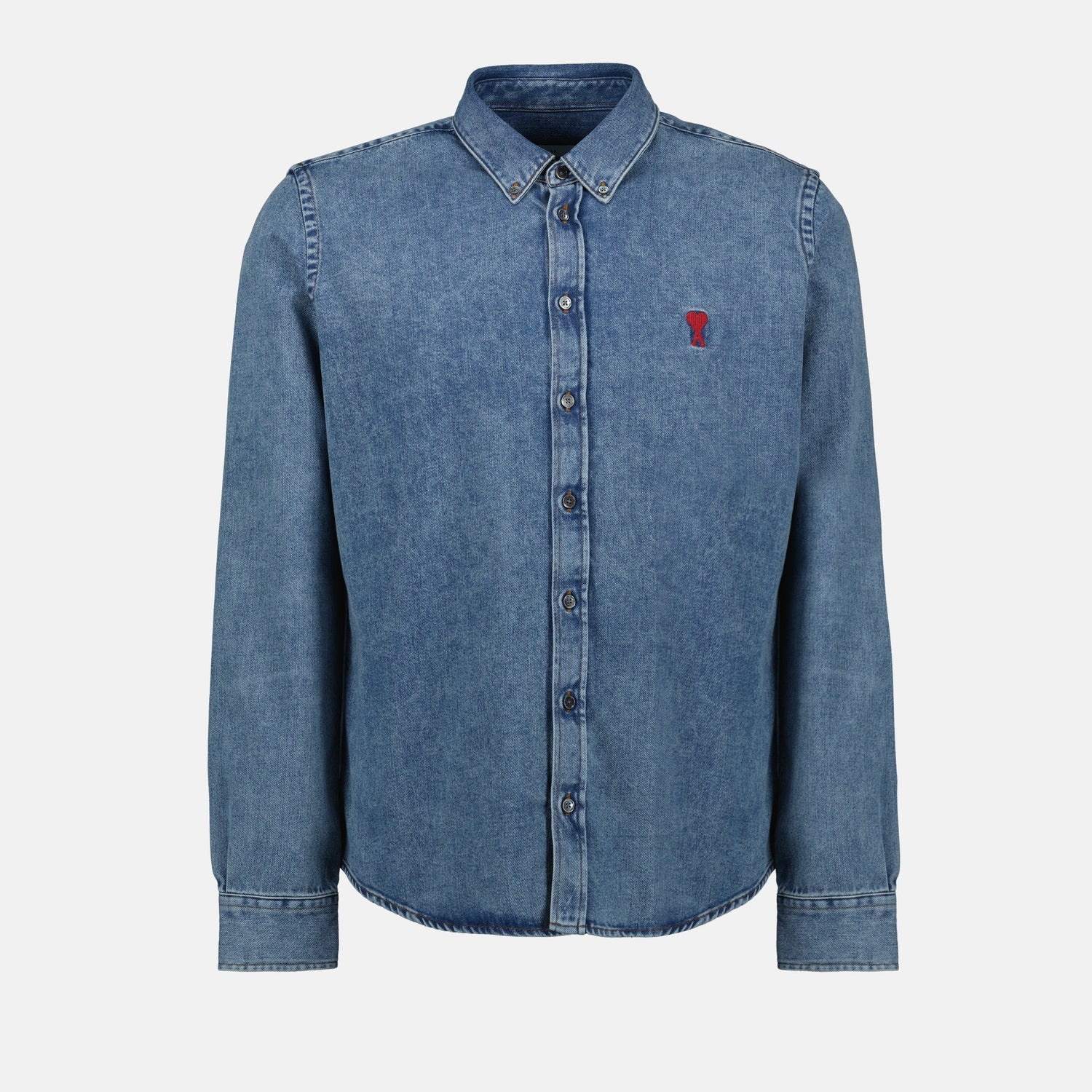 cotton shirt, AMI Paris, blue shirt, embroidered logo, classic collar