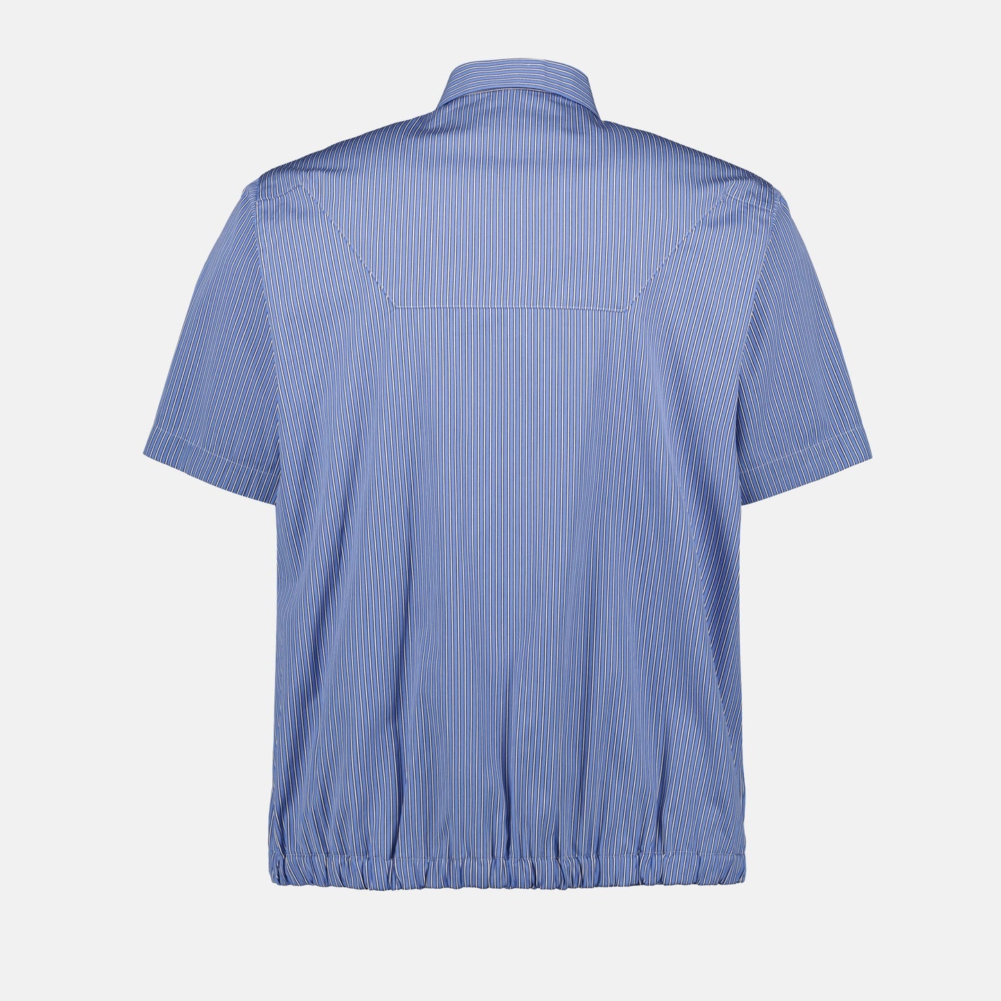 Esta llamativa camisa de algodón rayada azul de Sacai es una pieza esencial para cualquier armario moderno. Con su cuello clásico y mangas cortas, ofrece un look versátil que se puede vestir de forma formal o informal. El corte recto proporciona un ajuste cómodo, mientras que el cierre de botones añade un toque de refinamiento.