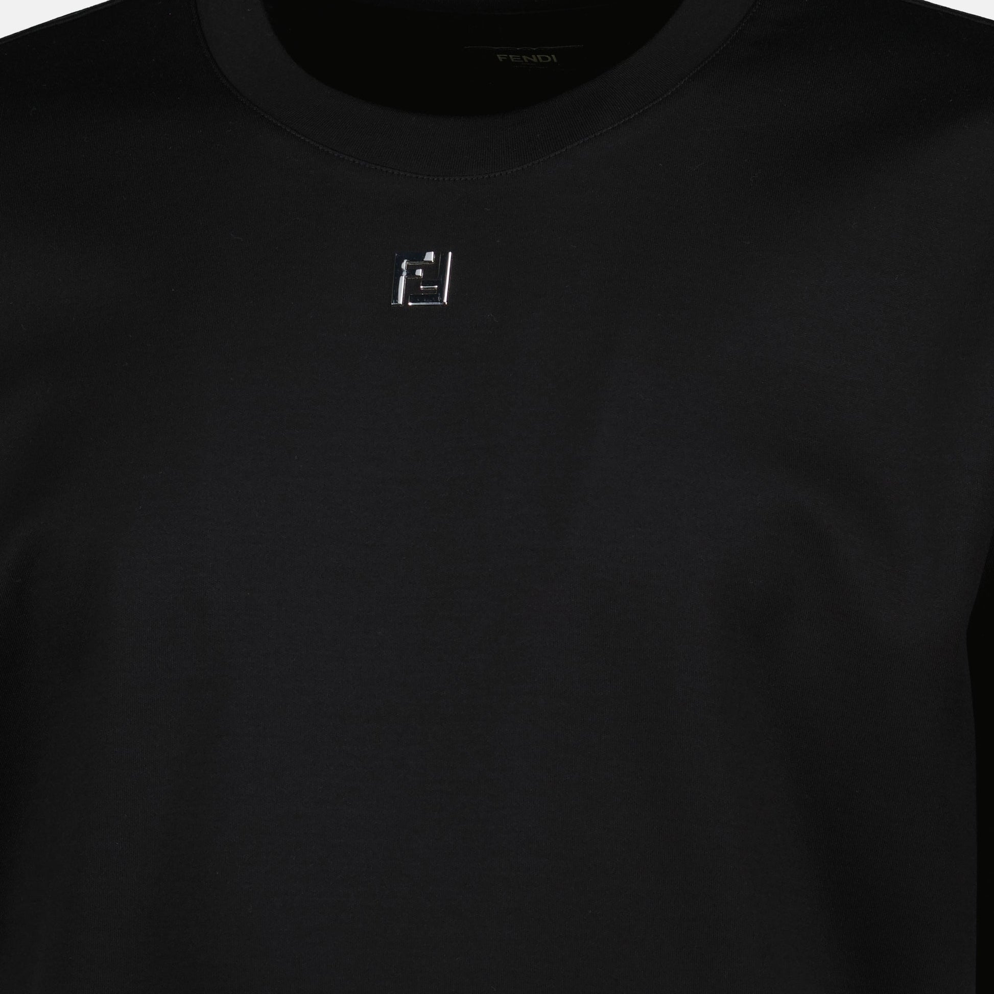 Explora el encanto refinado de esta camiseta de algodón negra de Fendi, parte de la colección Primavera-Verano 2025. Con un clásico cuello redondo y mangas cortas, este estilo ajustado realza tu silueta mientras asegura comodidad. El distinguido logo FF en metal está elegantemente colocado debajo del cuello, añadiendo un toque de sofisticación. Elaborada con algodón de alta calidad, esta pieza está disponible en múltiples colores, permitiendo opciones de estilo versátiles. Una adición atemporal a cualquier guardarropa, perfecta para looks casuales o refinados.