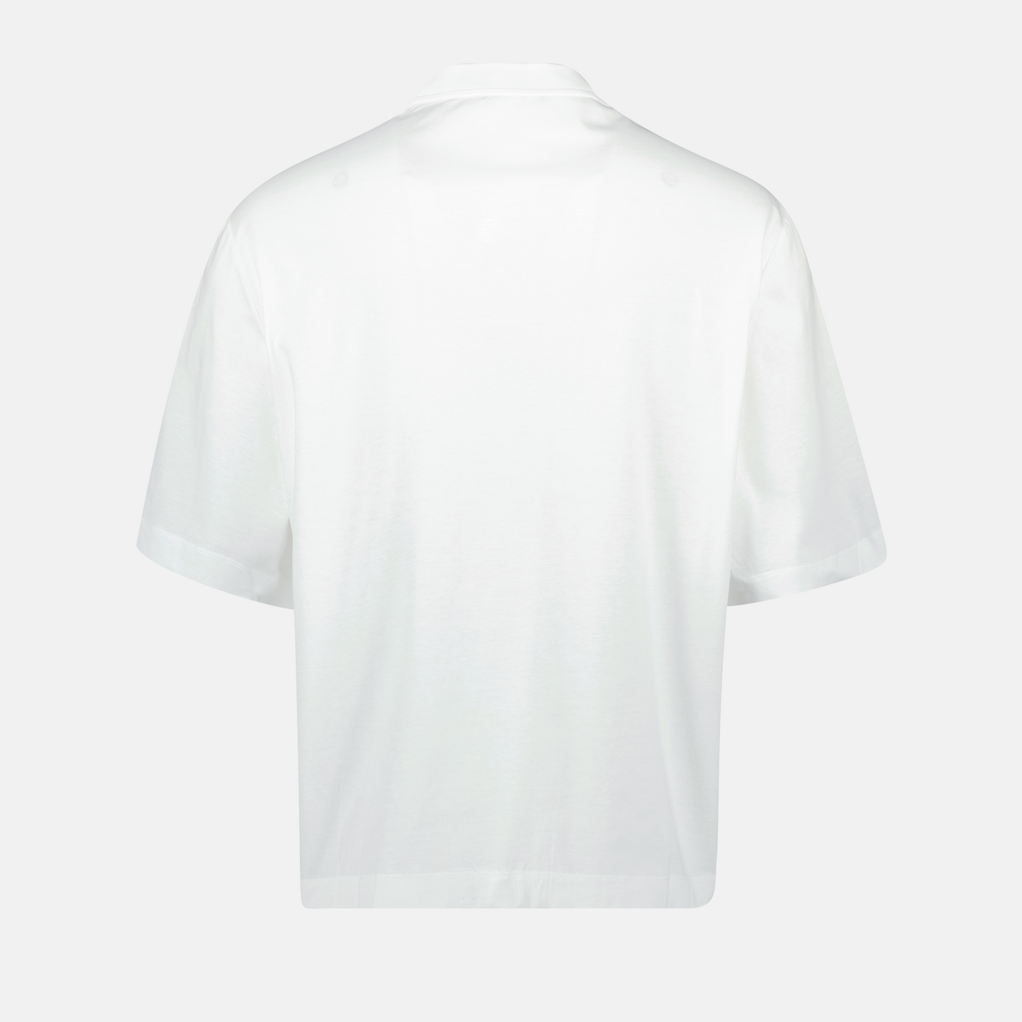 Esta camiseta blanca con estampado es una adición imprescindible a tu guardarropa, presentando un diseño limpio y contemporáneo. Confeccionada en suave algodón, cuenta con un cuello redondo y mangas cortas, asegurando comodidad y transpirabilidad. El frente muestra un estampado llamativo que añade un toque de sofisticación a un look casual. Perfecta para diversas ocasiones, esta pieza versátil se puede combinar fácilmente con jeans o pantalones de sastre.