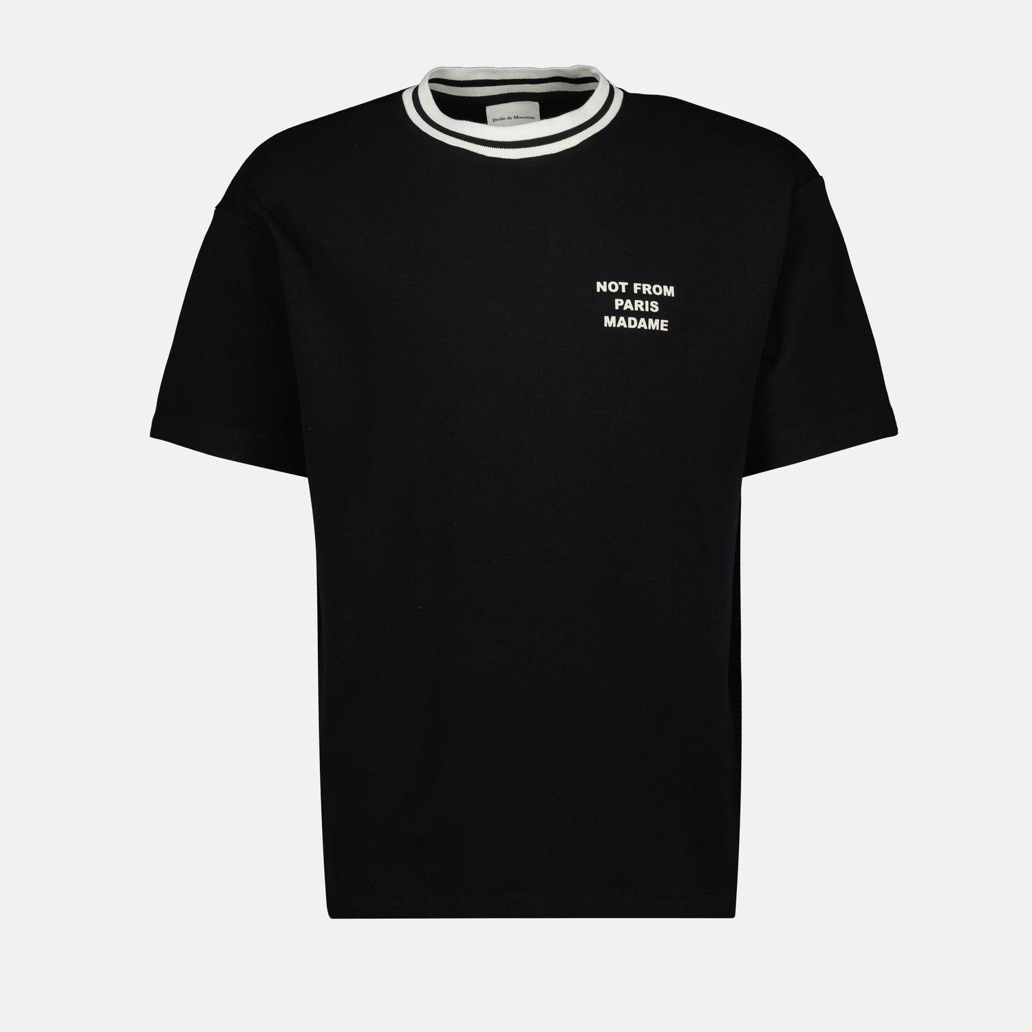 Adopta una estética casual pero sofisticada con esta camiseta de slogan en blanco y negro de Drole De Monsieur. Diseñada con cuello redondo y mangas cortas, presenta un distintivo estampado de logo que añade un toque contemporáneo. Confeccionada en suave algodón, esta prenda garantiza comodidad y transpirabilidad mientras mantiene un aspecto pulido. Su corte recto asegura versatilidad, convirtiéndola en una adición perfecta a tu guardarropa para la temporada Primavera-Verano 2025.