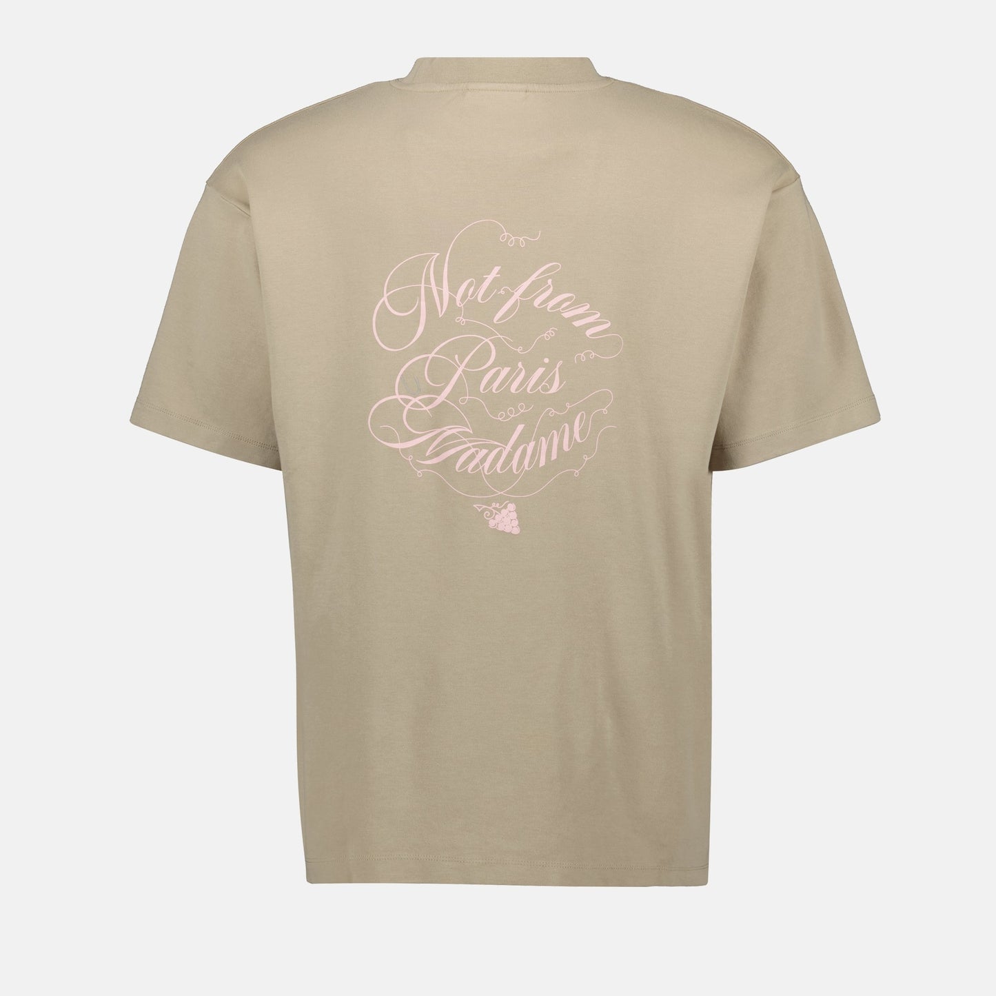 Presentamos la Camiseta Vignes Beige de Drole De Monsieur, elaborada con algodón suave para un uso cómodo. Este diseño cuenta con un cuello redondo y mangas cortas, encarnando simplicidad y sofisticación. El discreto color beige se complementa con un logo impreso de buen gusto, lo que la convierte en una excelente opción para salidas casuales o reuniones relajadas. Una adición versátil a cualquier armario, se combina perfectamente con pantalones o shorts para un estilo sin esfuerzo.