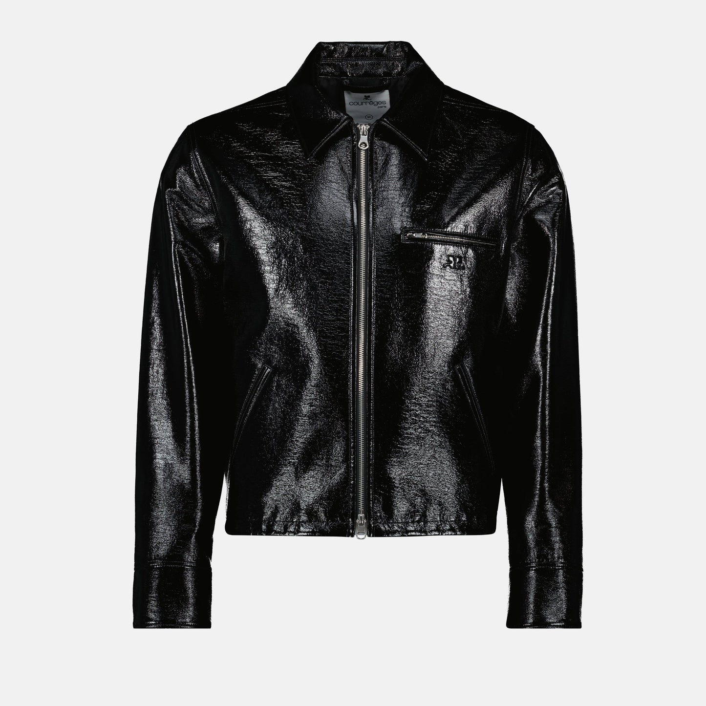 Eleva tu guardarropa con este llamativo chaleco de vinilo negro de Courrèges. Diseñado con un collar clásico y mangas largas, destaca por su moderno corte ajustado que favorece todas las siluetas. El exclusivo cierre de doble cremallera añade un toque audaz, mientras que el logo bordado en el frente asegura un look distintivo. La practicidad se une al estilo con los bolsillos laterales con cremallera, perfectos para lo esencial. Fabricado con una sofisticada mezcla de algodón y viscosa, este chaleco unisex pertenece a la colección Primavera-Verano 2025. Haz una declaración audaz con esta pieza contemporánea.