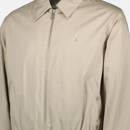 Experimenta una elegancia discreta con la Chaqueta Beige con Cremallera que presenta un refinado cuello clásico y mangas largas. El diseño atemporal presume de un corte recto, realzado por una cremallera bidireccional para un estilo versátil. El detalle de remache Ami de Coeur añade un toque característico de encanto, mientras que los bordes elásticos proporcionan comodidad. Cuidadosamente confeccionada con algodón de primera calidad, esta chaqueta es ideal para climas cálidos, ofreciendo una sensación ligera y transpirable. Equipado convenientemente con bolsillos laterales con abertura, combina bien con cualquier conjunto para un look pulido pero relajado.