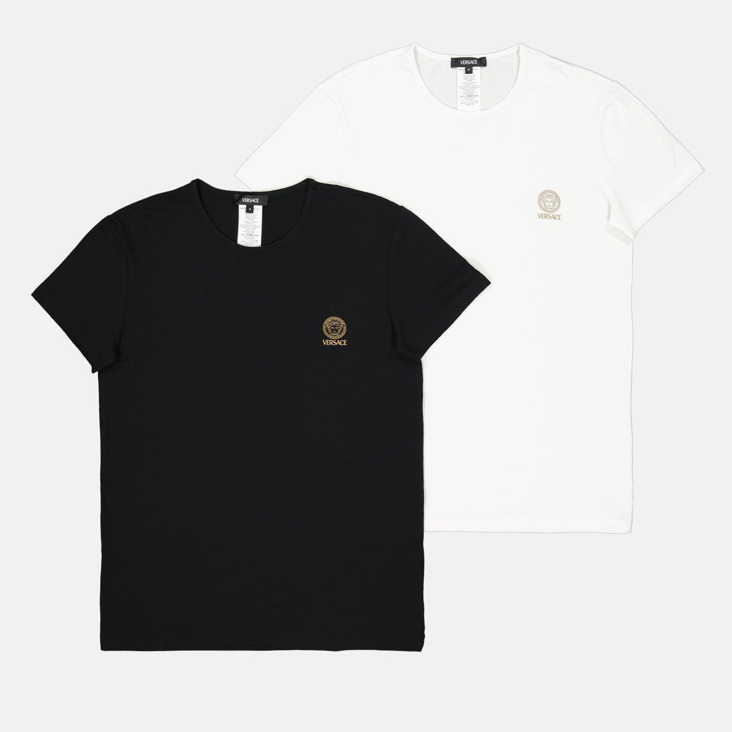 Eleva tu guardarropa con el conjunto de ropa interior con logo Medusa, que presenta una clásica paleta en blanco y negro. Este conjunto incluye dos piezas de ropa interior con un versátil cuello redondo y mangas cortas, entregando un corte recto que garantiza tanto comodidad como una silueta elegante. Confeccionado en una refinada mezcla de algodón y elastano, cada pieza encarna la perfecta fusión de elasticidad y suavidad. El discreto logo impreso añade un toque de estilo distintivo, convirtiéndolo en un esencial contemporáneo, ideal para el hombre moderno. Disfruta del atractivo sin esfuerzo de este conjunto cuidadosamente diseñado de la colección Otoño-Invierno 2024.