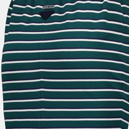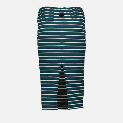 Adopta un estilo sin esfuerzo con esta falda lápiz a rayas verde-azul. Diseñada para la comodidad y la sofisticación, esta prenda está confeccionada en algodón ligero, garantizando una experiencia transpirable. La falda cuenta con una cintura ajustable con cordón para un ajuste personalizable, junto con un elegante ventilación trasera para mayor libertad de movimiento. Su chic patrón a rayas y el logo bordado añaden un toque de refinamiento, convirtiéndola en una adición versátil a tu guardarropa. Ideal para salidas diurnas o eventos nocturnos, esta falda encapsula la elegancia moderna.