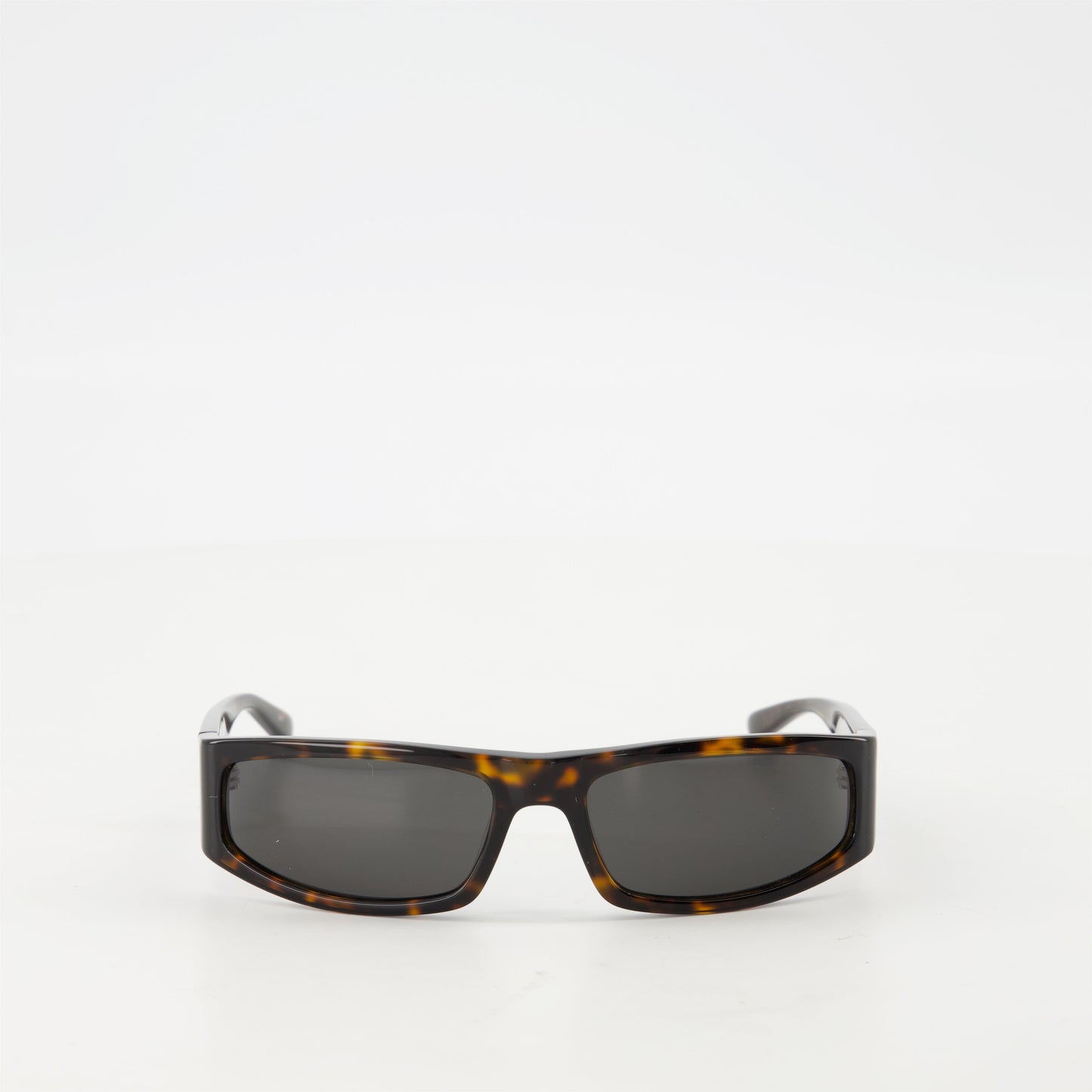 Explora el distintivo encanto de las gafas de sol de carey tecnológico de Courrèges. Esta excepcional pieza está artísticamente diseñada con un intrincado estampado de tortuga, mostrando una integración única de estilo y funcionalidad. Con el icónico logo de AC incrustado en la montura, estas gafas irradian sofisticación moderna.