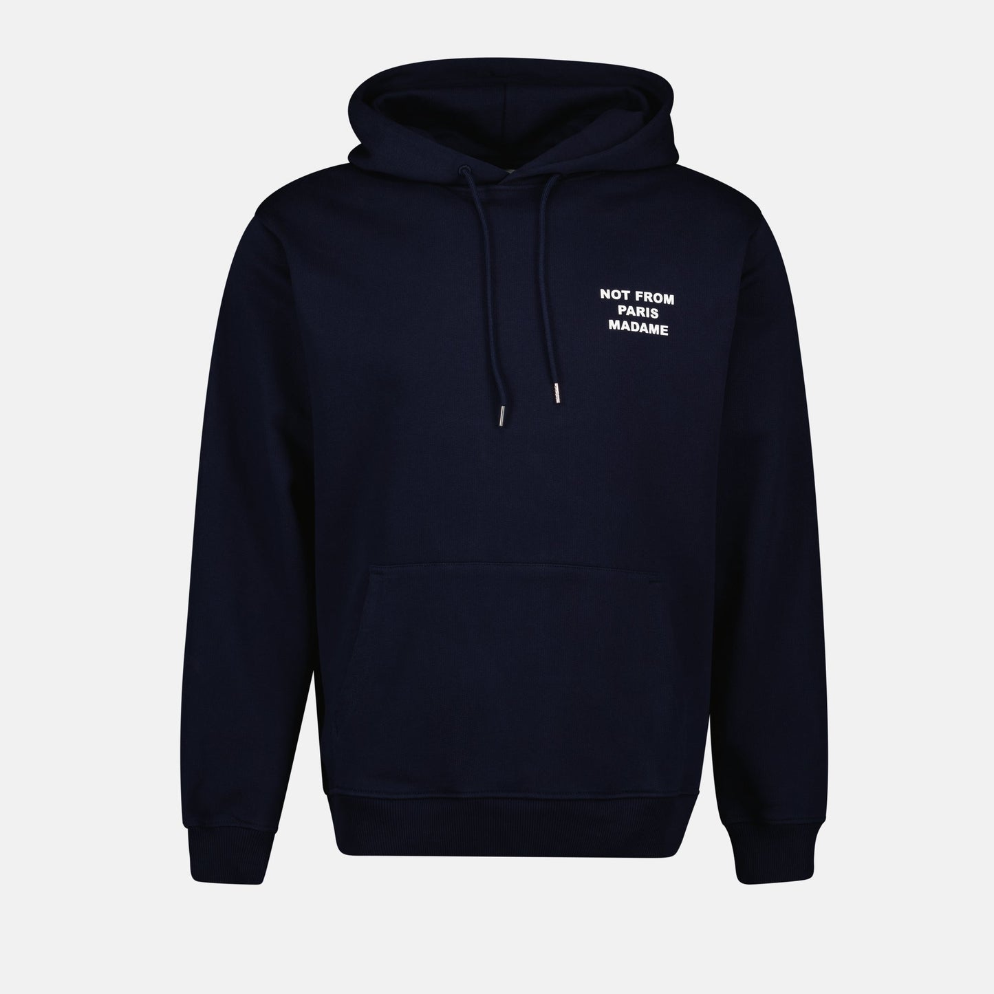 Te presentamos la Sudadera con Lema Navy, una pieza destacada de la colección Primavera-Verano 2025 de Drôle de Monsieur. Esta sudadera combina estética moderna con confort diario. Confeccionada en fino piqué de algodón, cuenta con un elegante logo impreso en el frente, mangas largas y acabados acanalados para un ajuste sobrio. La capucha fija y el práctico bolsillo tipo canguro añaden un toque de sofisticación casual. Su profundo tono navy aporta un elemento versátil y estiloso a cualquier guardarropa. Descubre la elegancia discreta con este diseño único, creado para elevar tu estilo sin esfuerzo.