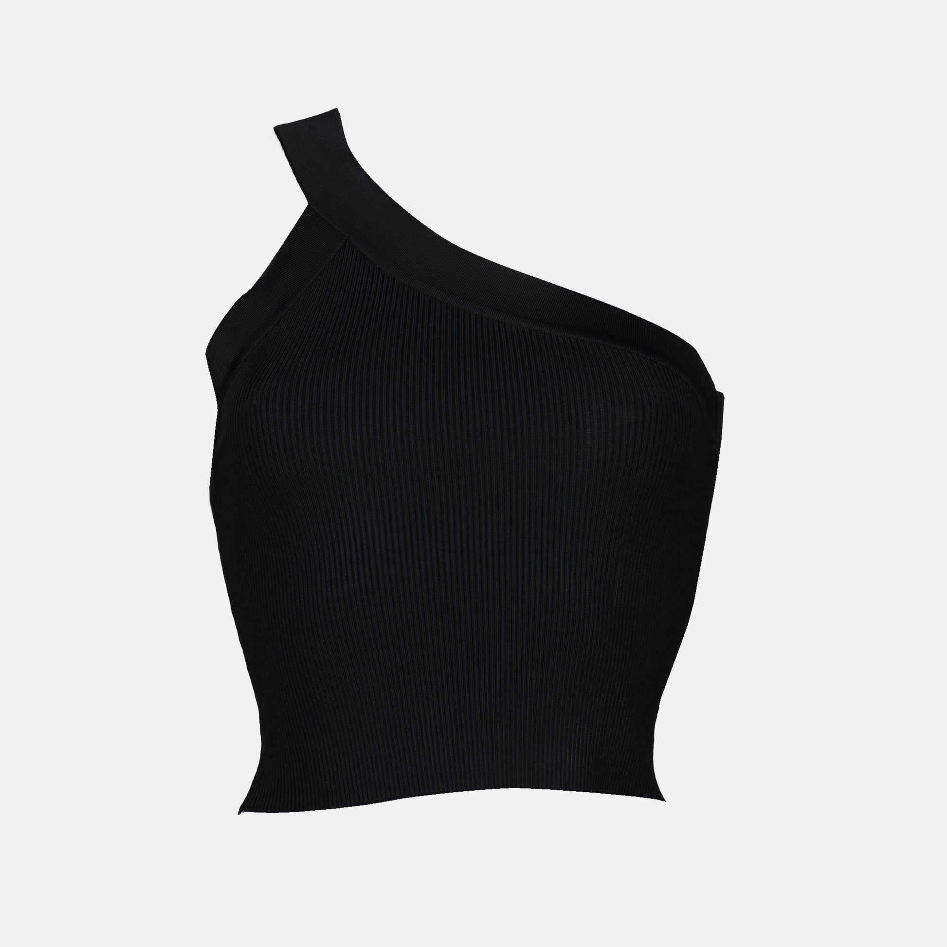 Presentamos el top Fethy en negro, una pieza impresionante de la colección Primavera-Verano 2025 de Iro. Este top muestra un elegante diseño asimétrico con una sola tirante, ofreciendo una silueta ajustada que realza la figura. Confeccionado en suave viscosa acanalada, proporciona tanto estilo como comodidad. Los bordes acanalados intrincados añaden un toque de textura, convirtiéndolo en una adición versátil a tu guardarropa. Combínalo con pantalones de corte o una falda elegante para un look pulido.