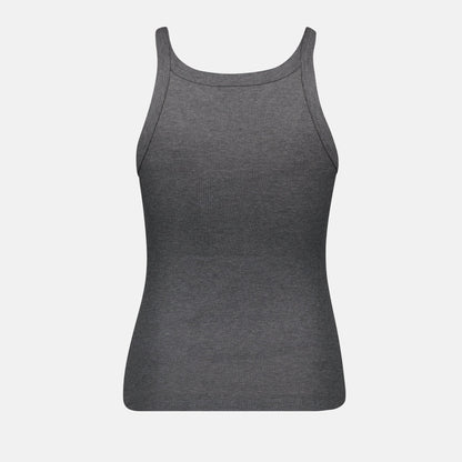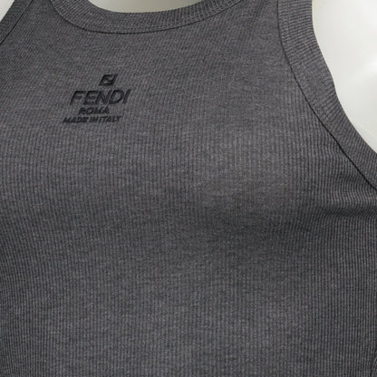 Sumerge en la elegancia discreta del top de tirantes gris de Fendi de la colección Otoño-Invierno 2024. Esta pieza muestra una meticulosa atención al detalle con su bordado de logo tonal en el frente, irradiando un aura sofisticada. Confeccionado con algodón de primera calidad, ofrece un ajuste ceñido cómodo y refinado, ideal para crear un conjunto equilibrado y elegante. El escote redondo y el diseño sin mangas añaden un toque atemporal, convirtiéndolo en una adición versátil para cualquier armario. Eleva tu estilo con esta pieza destacada que encarna la esencia de la sensibilidad de la moda moderna.