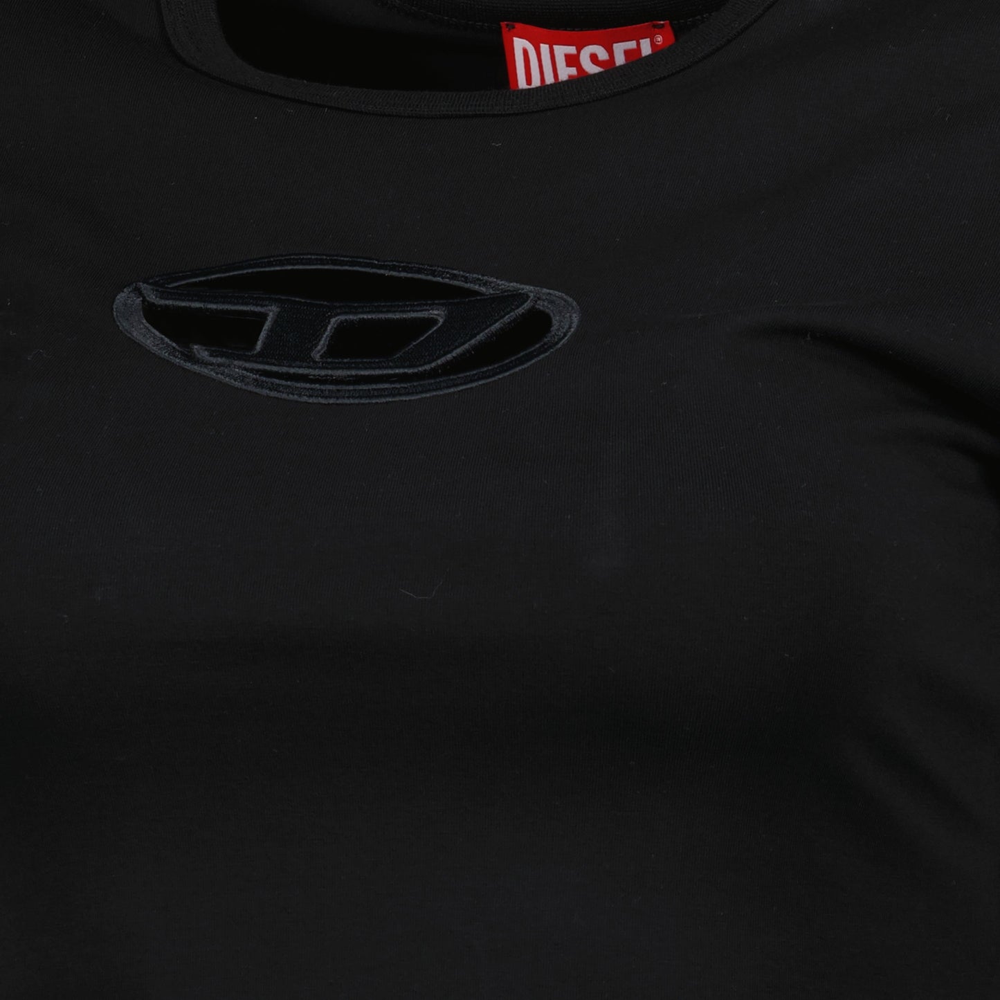 Eleva tu guardarropa con el vestido negro D-Angiel de Diesel, parte de la colección Primavera-Verano 2025. Este vestido elegante presenta un escote redondo y mangas cortas, ofreciendo un ajuste ceñido y favorecedor. El distintivo logo ovalado, con su diseño recortado, añade un toque moderno. Elaborado con una lujosa mezcla de algodón y elastano, garantiza estilo y comodidad para cualquier ocasión.