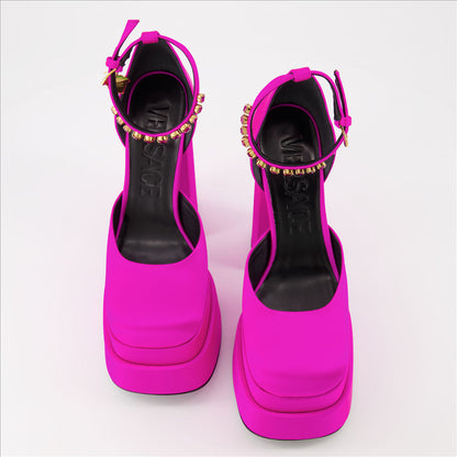 Eleva tu estilo con los Zapatos de Plataforma Medusa Aevitas de Versace en un vibrante tono rosa, elaborados por la icónica casa de Versace. Este diseño elegante cuenta con una silueta audaz con una plataforma sustancial y un tacón alto que mejora la postura. El distintivo detalle de Medusa añade una dimensión única de lujo, haciendo estos zapatos perfectos para ocasiones especiales o para añadir un toque de color y opulencia a tu look diario. Creados con el máximo cuidado y excelencia, estos zapatos son la encarnación de la feminidad y la refinación.