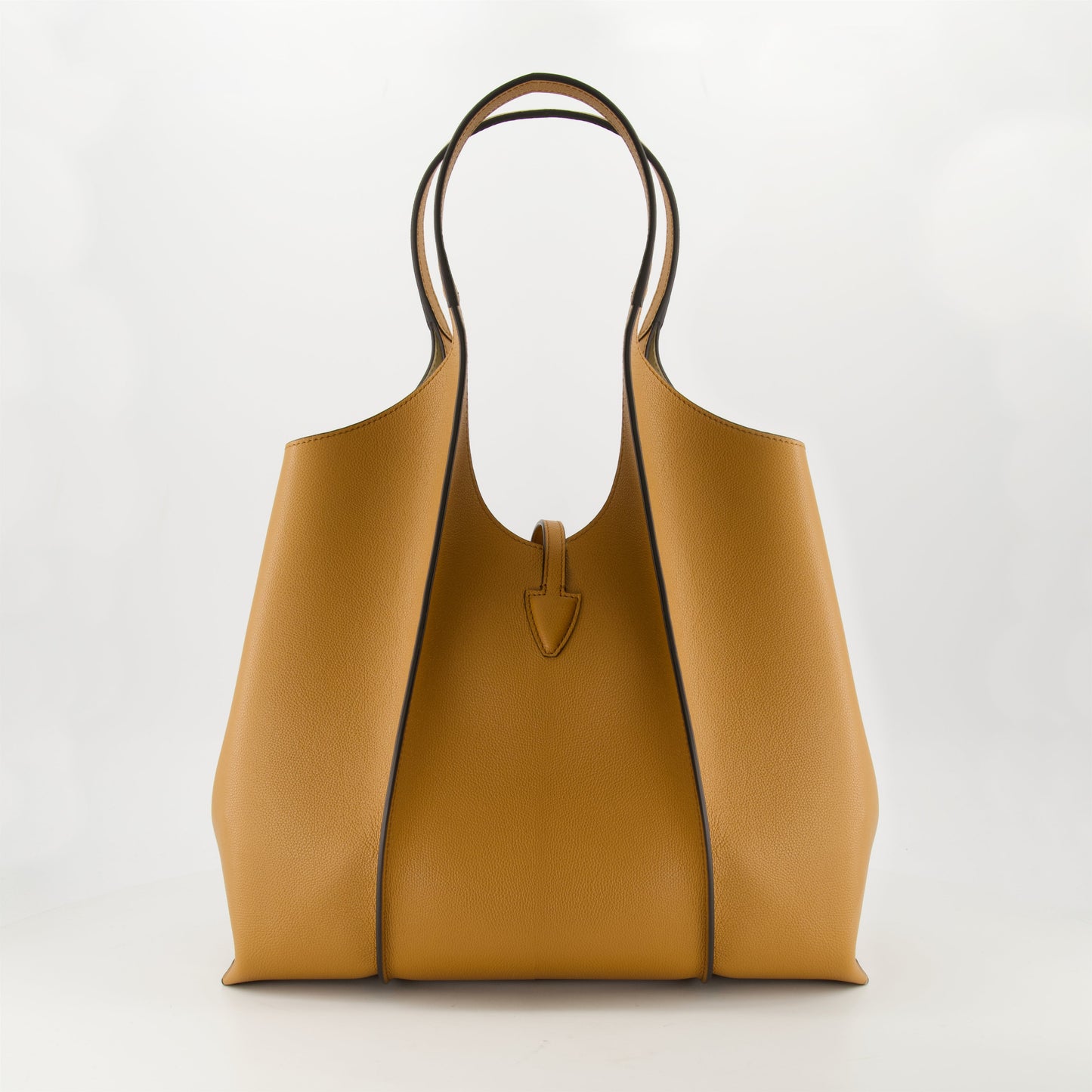 Découvrez le T Timeless Cabas dans une magnifique teinte camel, confectionné avec soin en cuir grainé. Ce sac, conçu avec une fermeture magnétique et des poignées fixes, allie harmonieusement fonctionnalité et style. La bordure contrastante ajoute une touche raffinée, tandis que la pochette zippée détachable garantit praticité. Avec les accessoires en métal emblématiques de Tod's et les pieds de protection, ce sac incarne l'élégance discrète. Un accessoire polyvalent adapté à toutes les occasions, il complète parfaitement votre garde-robe.