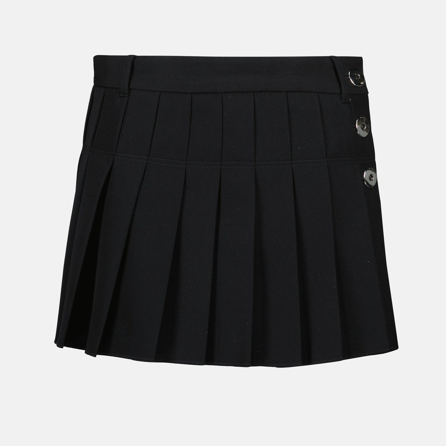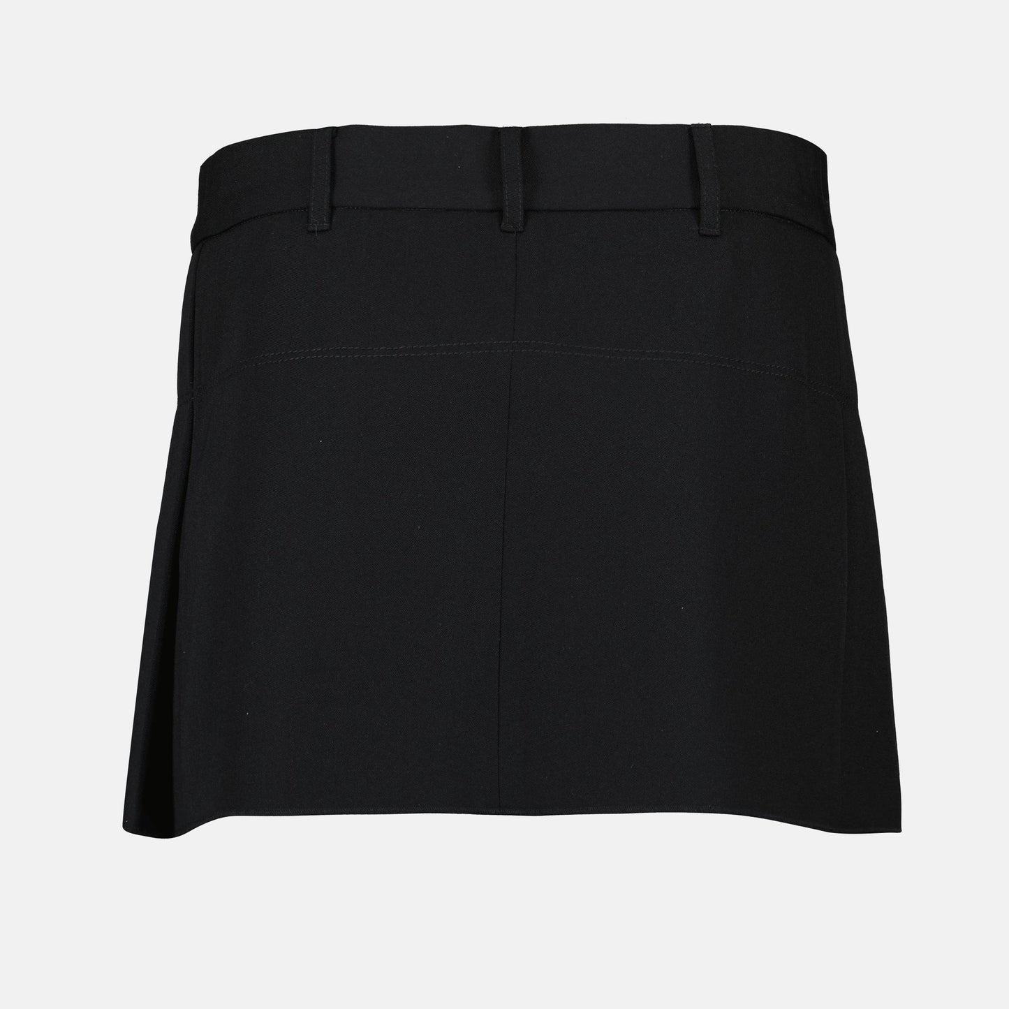 Cette jupe mini en laine noire de Rabanne présente un design sophistiqué avec une fermeture à trois boutons et une étiquette logo cousue. Fabriquée à partir d'un mélange de laine et de coton, elle arbore un style plissé élégant, faisant d'elle un ajout polyvalent à votre garde-robe. Cette pièce est parfaite pour les saisons plus chaudes, ajoutant une touche de grâce et de raffinement à votre tenue.