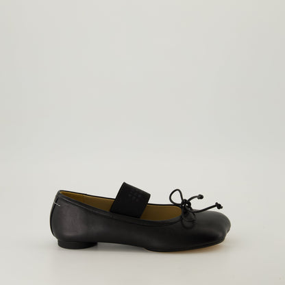 Élevez votre style avec ces ballerines en cuir noir anatomiques soigneusement confectionnées par MM6. Conçues avec soin, avec un nœud distinctif à l'avant, ces ballerines sont aussi élégantes que confortables. La construction en cuir nappa est complétée par une bride papillon élastique ornée de la signature numérique MM6, embrassant élégamment chaque pas. Complétant le design sophistiqué se trouve un subtil talon cylindrique, offrant une silhouette unique et un soutien fiable. Parfaites pour ceux qui recherchent à la fois raffinement et polyvalence, ces ballerines de la collection Automne-Hiver 2024 sont un ajout intemporel à toute garde-robe.