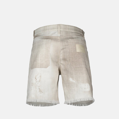 Le Bermuda en denim beige de Fendi présente un mélange parfait de style et de raffinement pour le gentleman exigeant. Ces shorts haut de gamme sont confectionnés en denim beige de qualité supérieure, offrant un look subtil mais sophistiqué. La coupe méticuleusement conçue assure le confort tout en maintenant une apparence soignée, adaptée à tout cadre décontracté mais raffiné.