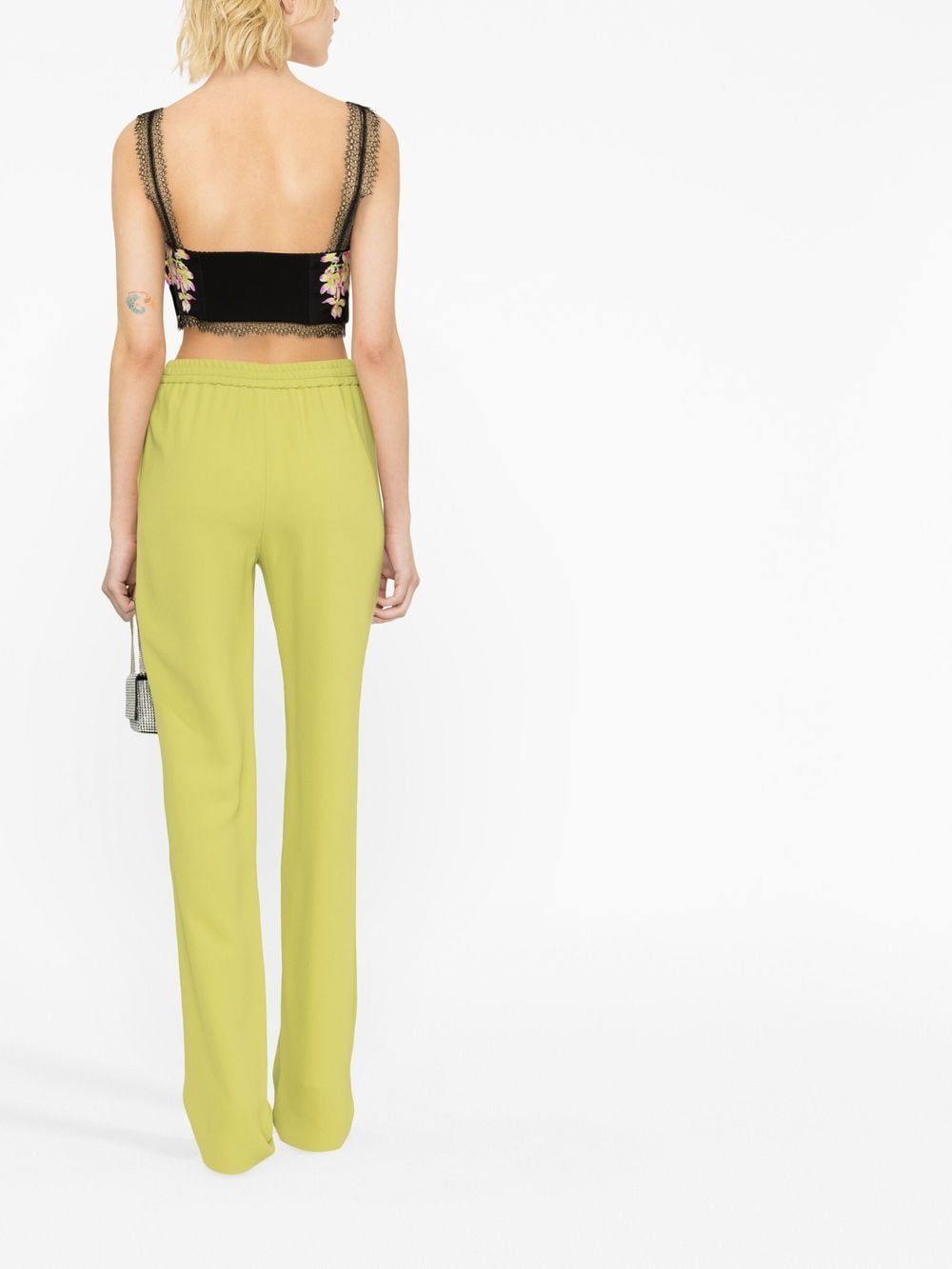 Élevez votre look avec ce bustier iconique, qui incarne parfaitement le luxe et le glamour sophistiqué. Le design vibrant d'orchidée et de Méduse ajoute non seulement une touche de couleur mais intègre également les éléments de style signature de Versace, en faisant une addition unique et intemporelle à votre collection.