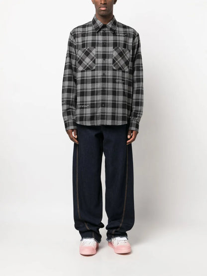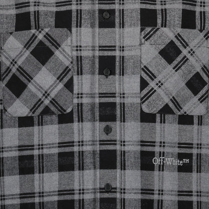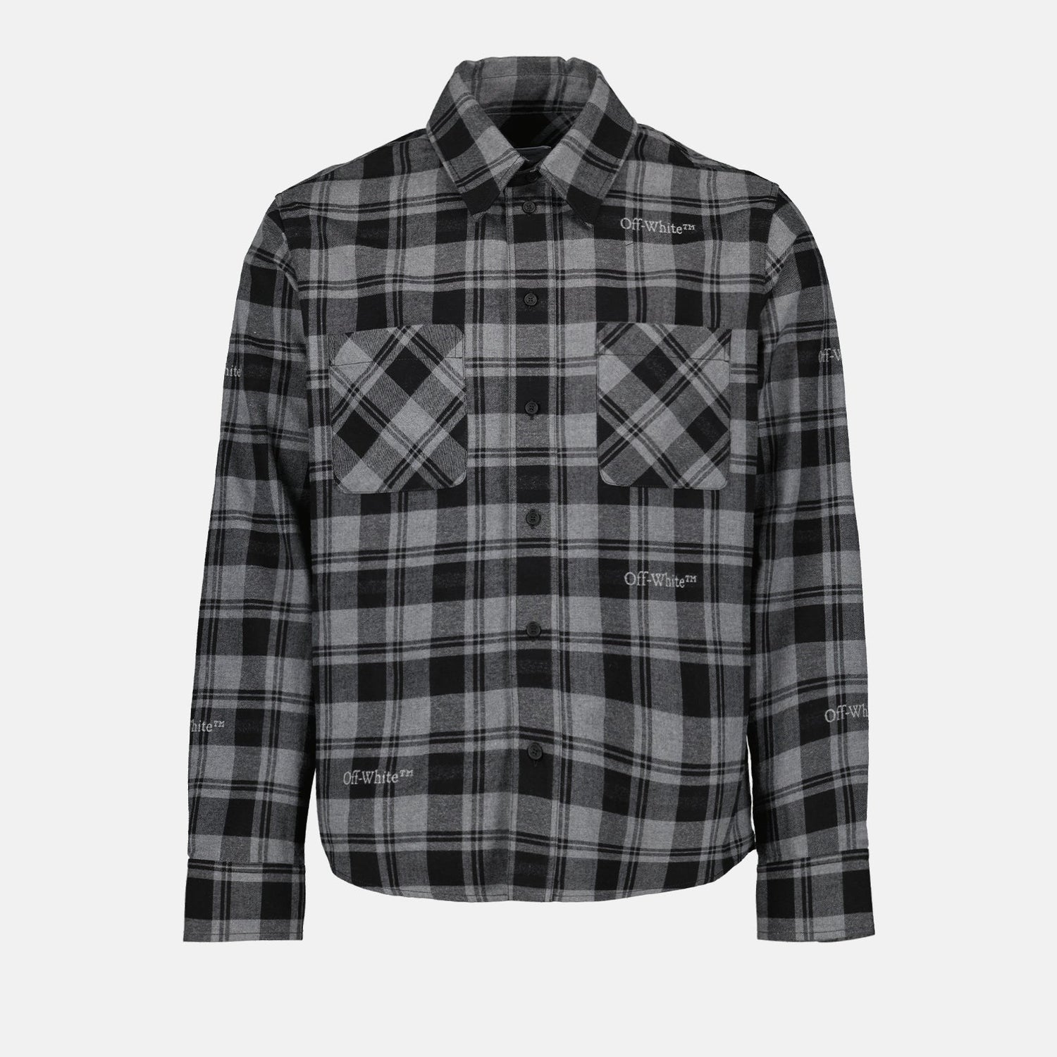 Adoptez un mélange de design classique et de style contemporain avec la chemise en flanelle Off-White dans un élégant motif à carreaux gris. Cette pièce luxueuse est fabriquée à la perfection, offrant à la fois confort et esthétique haut de gamme. La chemise présente un détail de poche soigneusement construit qui ajoute une touche exclusive à son design intemporel en flanelle.