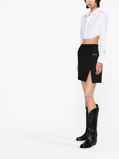 Découvrez la Mini-jupe Croisée Noire pour Femmes par Off-White, un ajout luxueux à notre collection de mode haut de gamme. Confectionnée avec une attention méticuleuse aux détails, cette mini-jupe présente un design unique à l'avant croisé qui exsude une élégance contemporaine. La couleur noire profonde confère une touche de sophistication, en faisant une pièce polyvalente pour diverses occasions.