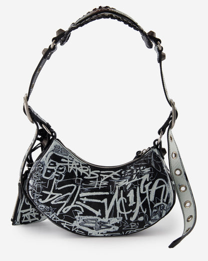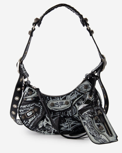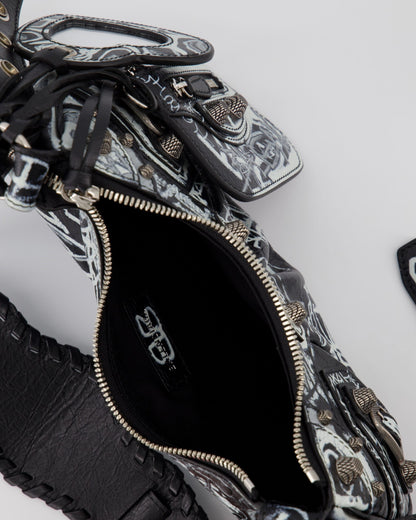 Plongez dans l'élégance raffinée de ce Sac à Épaule en Agneau Imprimé Graffiti Arena par Balenciaga. Son savoir-faire inégalé est mis en valeur par un imprimé graffiti artistique, dégageant à la fois une allure contemporaine et sophistiquée. Le sac à épaule, fabriqué en Italie, dispose d'une bandoulière réglable d'une longueur de 18,1 pouces et d'un épaulette en cuir tressé pour un confort accru. La fermeture du sac est sécurisée par une fermeture éclair et un extracteur en cuir noué, garantissant à la fois style et sécurité.