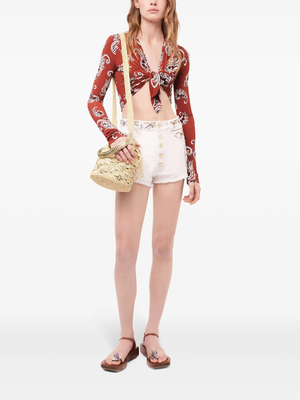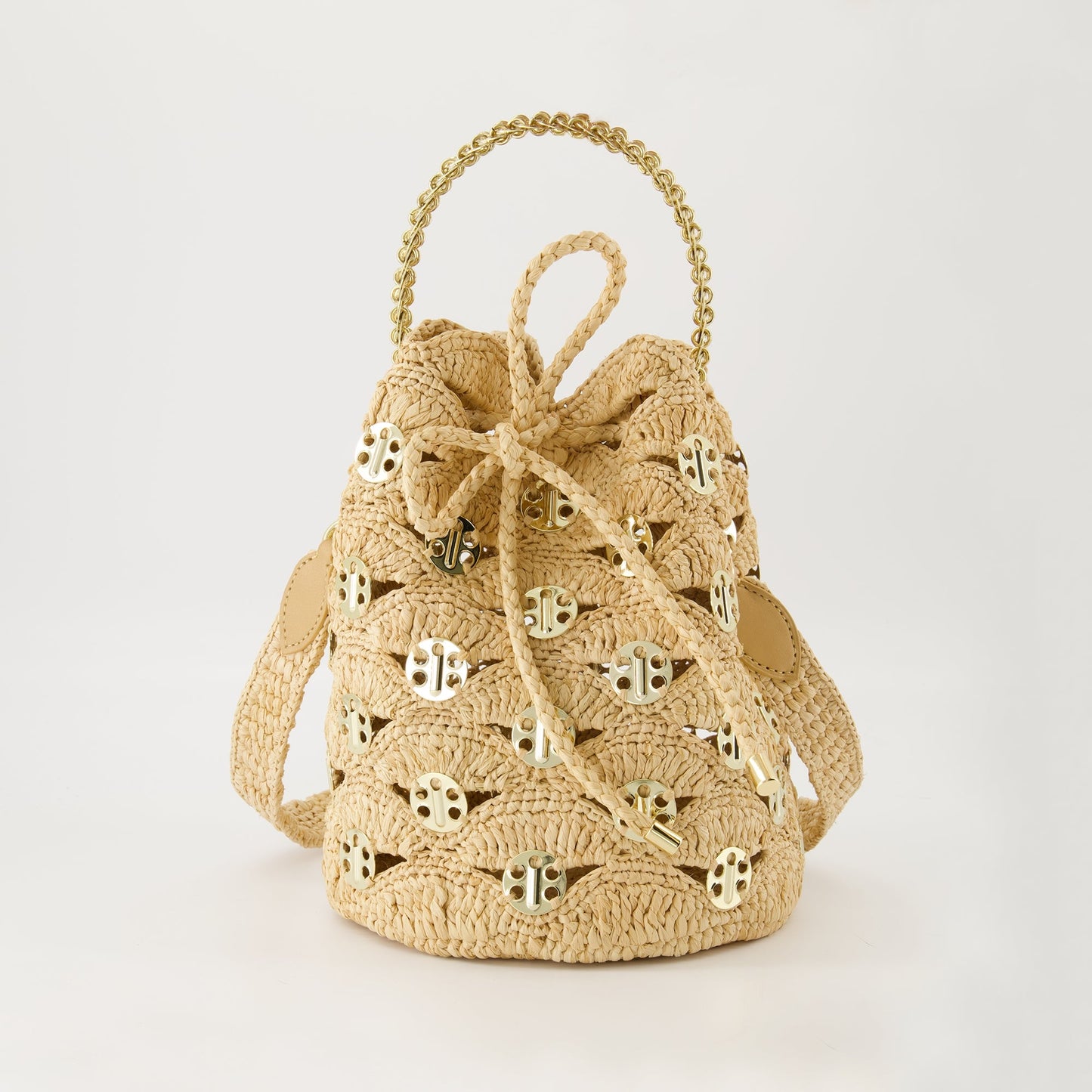Le sac seau en raphia Signature 1969 est un accessoire remarquable qui incarne la sophistication et la polyvalence. Confectionné en raphia durable dans une teinte beige douce, il dispose d'une fermeture à cordon pratique pour un rangement sécurisé et d'une chaîne amovible pour s'adapter à vos préférences stylistiques. Le logo gravé ajoute une touche de distinction, tandis que le compartiment principal offre suffisamment d'espace pour vos essentiels. Avec des détails raffinés rappelant la collection 1969, ce sac allie parfaitement fonctionnalité et design chic, faisant de lui un ajout indispensable à toute garde-robe.