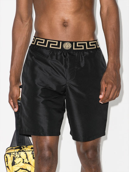 Élevez votre collection de maillots de bain avec le Short de Bain Noir Medusa de Versace. Conçu avec expertise pour le gentleman exigeant, ce short de bain arbore l'emblématique emblème Medusa, synonyme de luxe et d'excellence en design. Le tissu noir premium offre un look élégant et sophistiqué, tandis que la coupe ajustée garantit confort et style, que ce soit dans l'eau ou en dehors. Une ceinture élastiquée avec cordon de serrage offre un ajustement personnalisé, faisant de ces shorts le choix idéal pour les occasions à la plage et au bord de la piscine. Faites l'expérience d'une qualité inégalée avec l'élégance intemporelle de Versace.