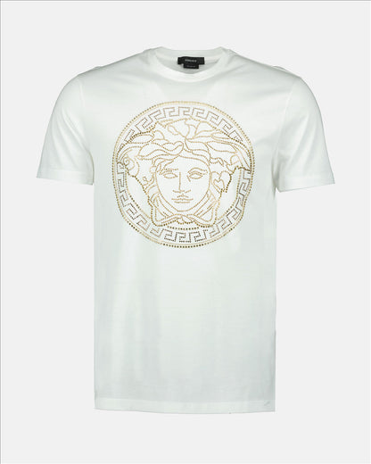 Affichant une élégance inégalée, le Medusa Strass T-shirt peut élever n'importe quelle tenue décontractée en un look affirmé, reflétant une aura d'opulence synonyme de Versace. L'attention méticuleuse aux détails et l'artisanat supérieur garantissent que ce vêtement est non seulement stylé mais aussi durable et intemporel.