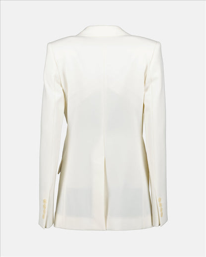 Élevez votre garde-robe avec cette veste blazer blanche de Stella McCartney. Confectionnée en tissu de haute qualité, cette pièce combine confort et élégance. Sa coupe ajustée et ses lignes épurées créent une silhouette sophistiquée, tandis que le col à encoche ajoute une touche de classicisme intemporel. Parfaite pour un look de bureau chic ou une soirée exquise, cette veste se marie sans effort avec vos pièces préférées pour créer des ensembles toujours plus élégants.
