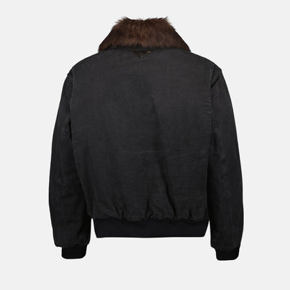 Adoptez une mode raffinée avec cette exquise Veste avec Col en Mouton. Confectionnée en coton noir vieilli de première qualité, la veste arbore une coupe oversized qui allie confort et style. Le col en mouton amovible ajoute une touche polyvalente, vous permettant de changer de look sans effort. Dotée d'une fermeture éclair, de bords côtelés et de poches à rabat élégantes, cette veste est un ajout sophistiqué à toute garde-robe moderne. Un subtil détail de logo triangulaire perfectionne cette pièce intemporelle, qui provient de la collection Printemps-Été 2025.