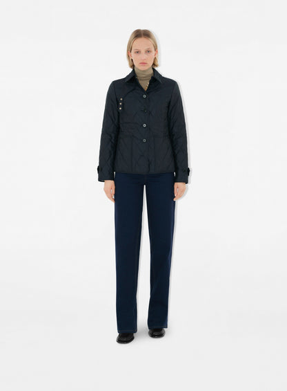 Démarquez-vous avec cette veste matelassée en nylon bleu de Burberry. Arborant un design à la fois classique et moderne, elle offre une coupe ajustée qui mettra en valeur votre silhouette. Le col classique et les manches longues ajoutent une touche d'élégance, tandis que la fermeture à boutons et les poches latérales à rabat allient praticité et style. Le design en matelassage en losange témoigne du savoir-faire inégalé de Burberry. Un incontournable pour toute garde-robe luxueuse.
