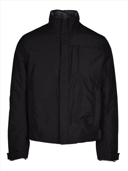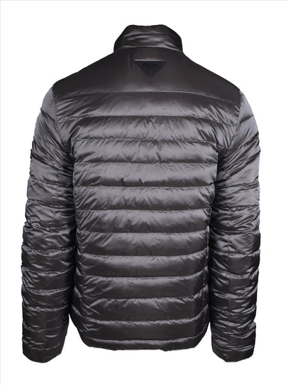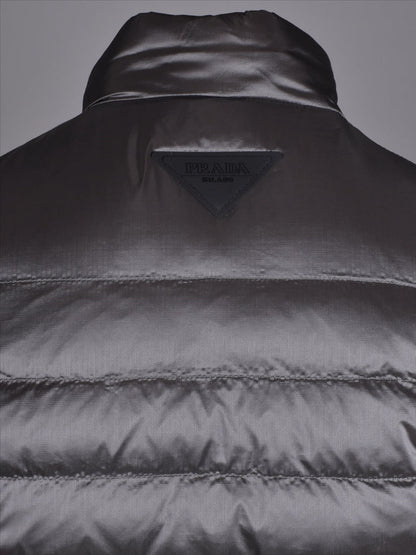 L'extérieur de la veste arbore une teinte grise raffinée fabriquée à partir de matériaux premium, garantissant à la fois confort et durabilité. L'intérieur révèle un côté contrastant qui ajoute une touche unique, parfait pour ces moments où vous désirez un changement subtil sans compromettre le style. L'attention portée aux détails par Prada est évidente dans les coutures finement cousues, la coupe ajustée et les finitions de haute qualité, reflétant l'engagement de la marque envers l'excellence.