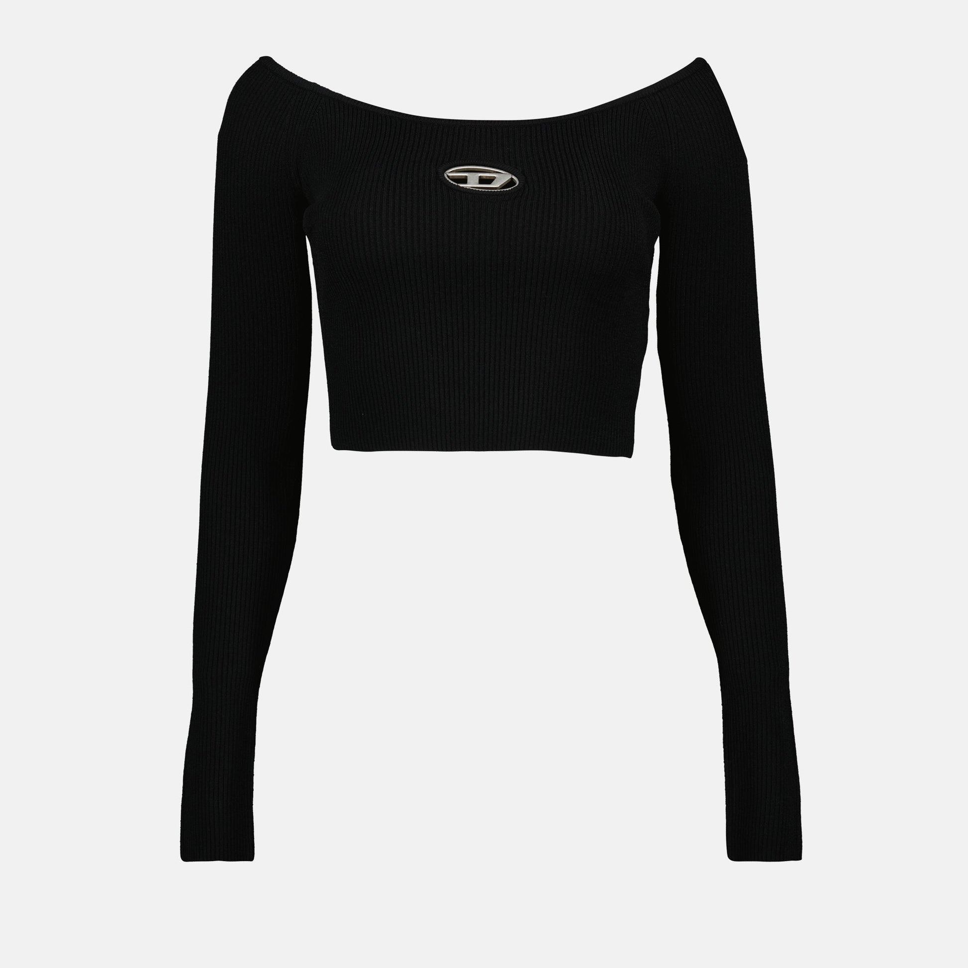 Dieselのリブニットトップ M-Vera-Lsをご紹介します。スタイリッシュなワードローブの新しいアイテムです。このトップは快適なリブニットで作られており、シックさとカジュアルさが見事に融合しています。長袖とフラatteringなクロップドシルエットが特徴で、ポリッシュメタルのシグネチャーであるOval-Dロゴが際立っています。タイムレスなブラックの色合いで提供されており、レイヤリングにも一枚での着用にも適しており、洗練されたモダンなルックを演出します。品質の高いクラフトマンシップと細部へのこだわりが、あらゆる場面にふさわしい上品な選択肢を提供します。