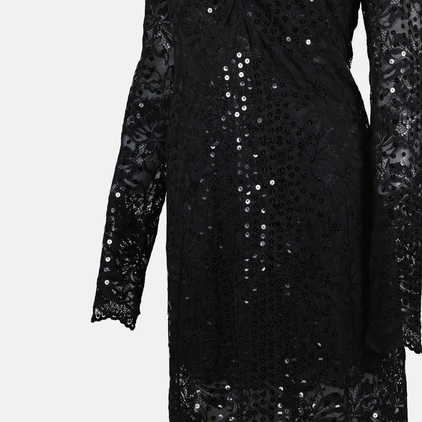 Rabanneのオータム-ウィンター2024コレクションからの洗練されたブラックレースロングドレスで、ワードローブを格上げしましょう。このドレスはエレガントなボートネックと長袖を備え、時代を超えた魅力を提供します。ポリアミドで作られた繊細なレースのディテールとフルレースの裏地が、テクスチャーと洗練さを演出します。スリップオンスタイルで手間なく着用でき、縫い付けられたロゴラベルがその正統性を控えめに示します。足首で終わるフルレングスのカットが優雅な動きを確保し、さまざまなシーンでの汎用性を提供します。この見事に作られた作品で、洗練されたスタイルを体験してください。