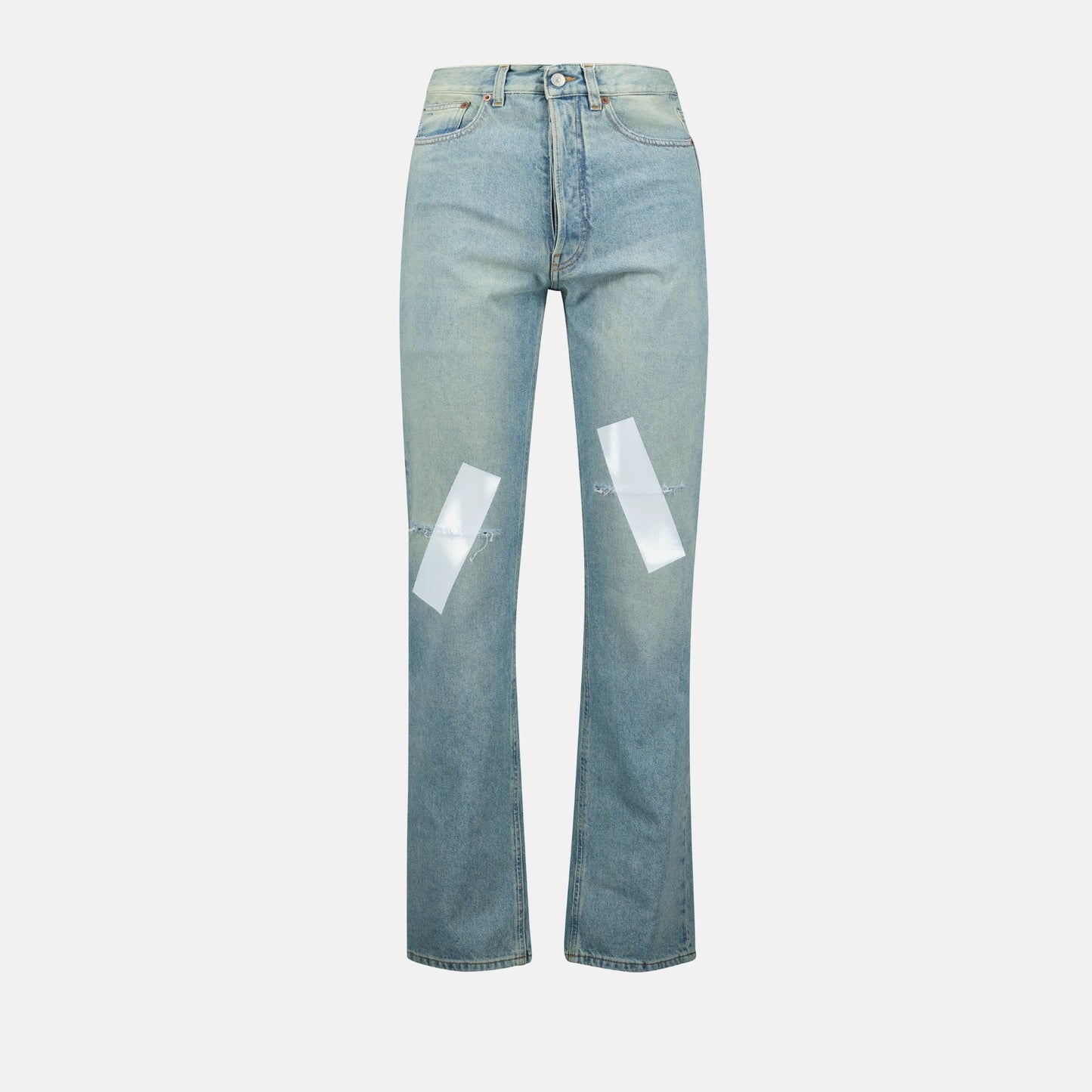 MM6のパッチワークジーンズをご紹介します。2025年春夏コレクションからの注目の一品です。クラシックな青のデニムを使用し、使い込まれた風合いで丁寧に仕立てられたこれらのジーンズは、現代的なスタイルに遊び心を加えています。デザインには膝に貼り付けたバンドのディテールがあり、ワードローブの必需品に独自のアクセントを与えています。ストレートフィットでクラシックなウエスト、ボタンとジッパーで留められたこれらのジーンズは、快適さとスタイルを両立させています。5つのポケットデザインとベルトループを備え、機能性と独自の美学を兼ね備えています。