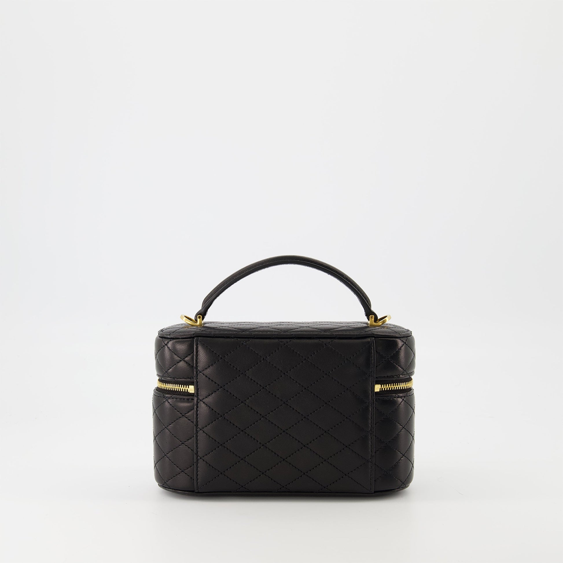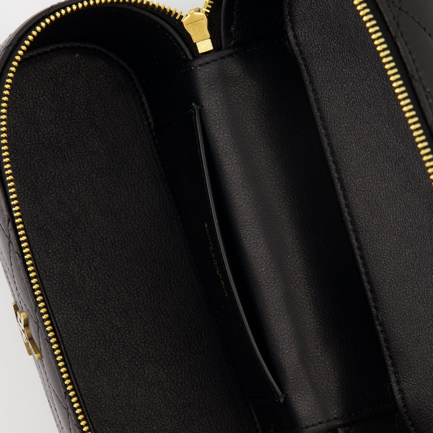スリークなブラックのギャビー バニティ ケースを紹介します。これはサンローランの2025年春夏コレクションからの絶妙なアイテムです。柔らかなラムスキンレザーで作られたこのエレガントなハンドバッグは、その魅力を高める洗練されたディテールが特徴です。シックなゴールドトーンのジッパーとシグニチャーロゴが洗練さを加え、実用的なハンドルは快適な持ち運びを保証します。すべての必需品を収容できる広々とした内部を備えたこのバニティ ケースは、日常の着用から特別な場面への移行がスムーズで、控えめなエレガンスであらゆるアウトフィットを引き立てます。