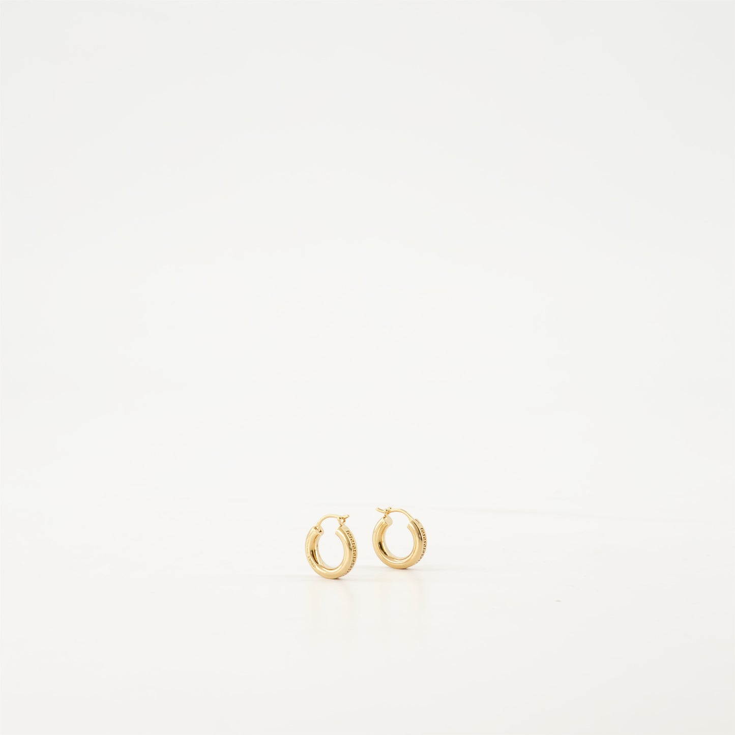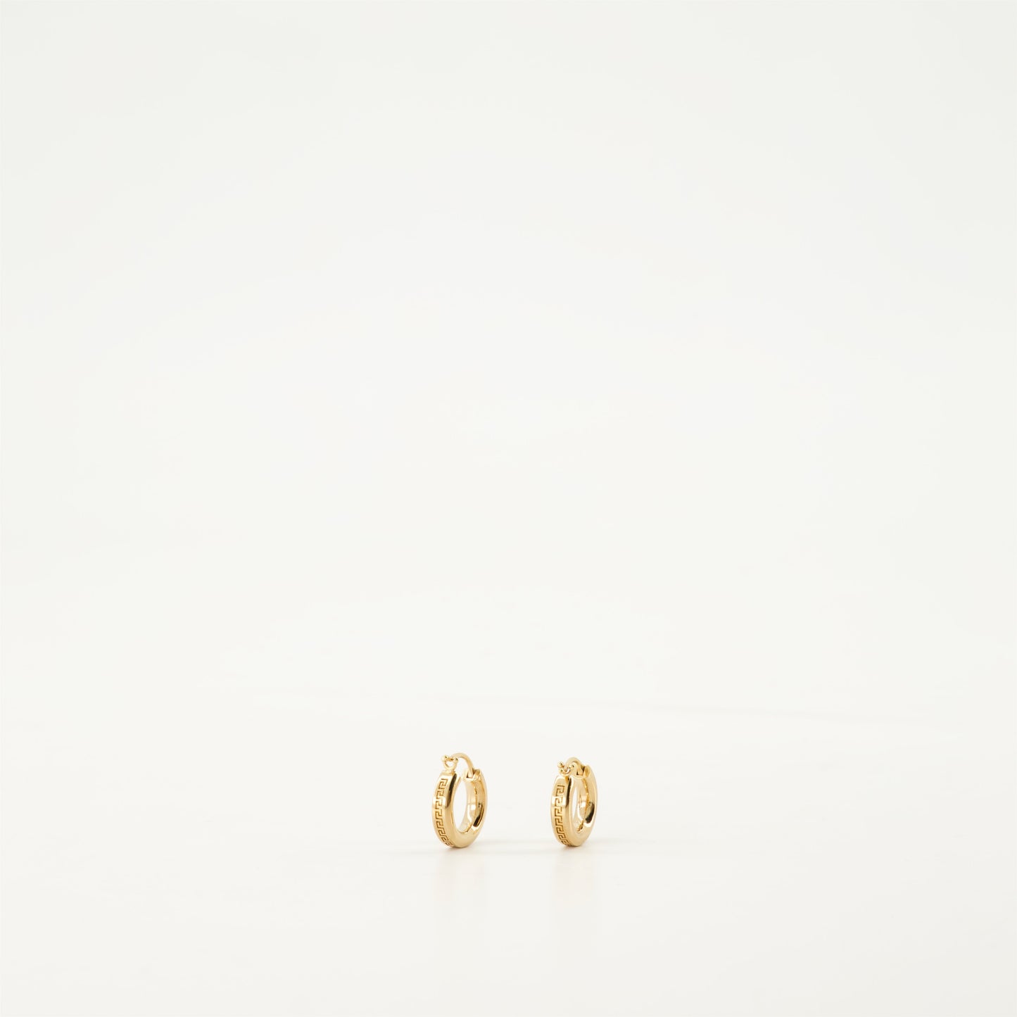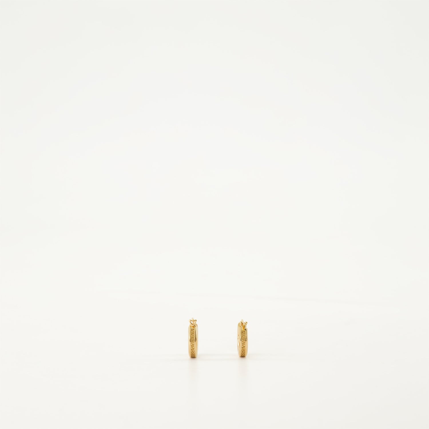 名門コレクションからの洗練されたアクセサリー、グレカゴールドフープイヤリングで優雅さを漂わせましょう。金属的な光沢のある仕上がりとクラシックなクラスプが特徴で、精巧に刻まれたロゴが洗練されたスタイルを体現しています。アレルギーを引き起こさない素材で丁寧に作られており、優美さと快適さを両立させています。この時を超えたアイテムでコレクションを豊かにし、どんな装いにも華を添えることができます。