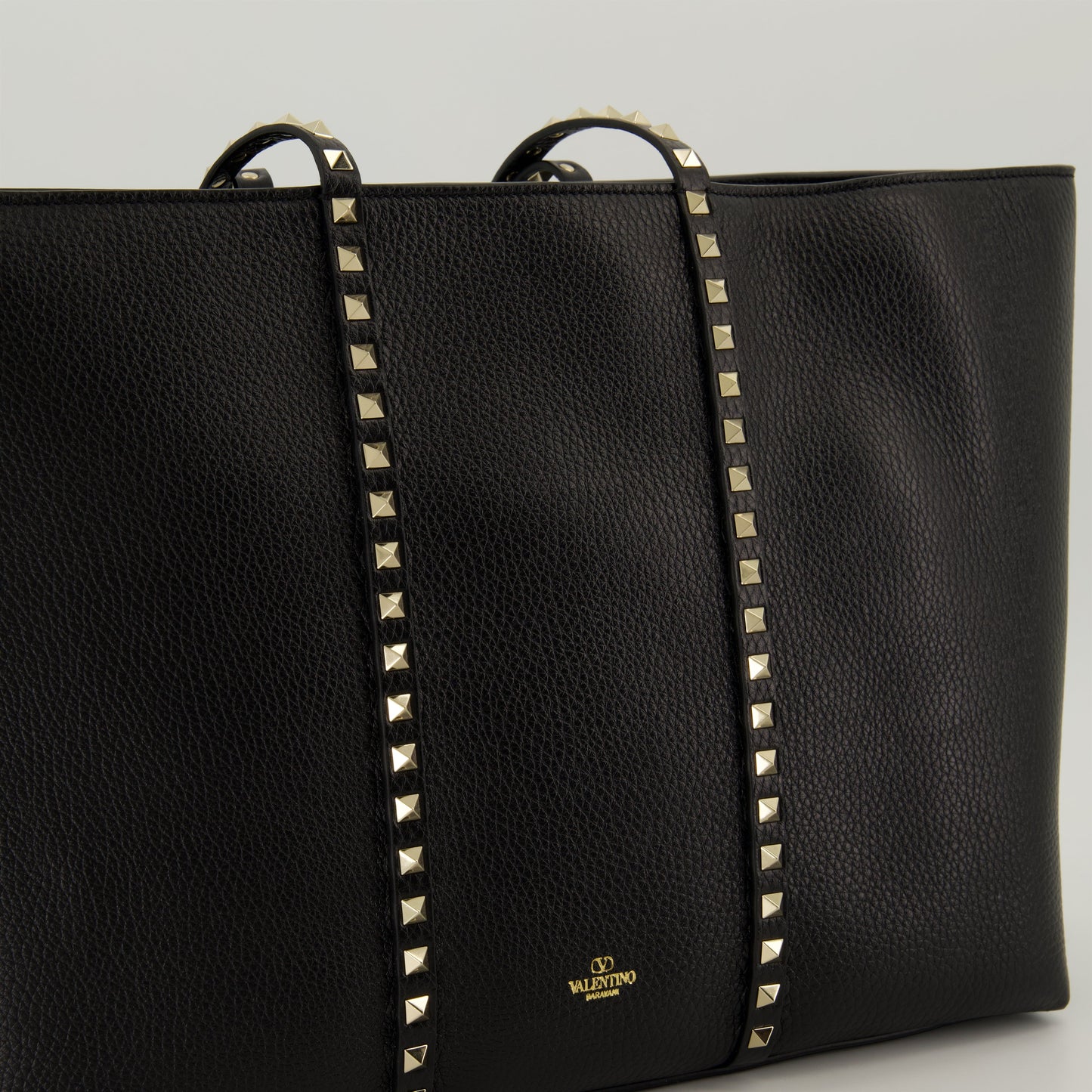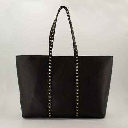 高品質のカーフレザーで巧みにデザインされたブラックレザートートバッグの時を超えた優雅さをご覧ください。このアクセサリーは、目を引くプラチナのロックスタッズ装飾と控えめなメタリックロゴを備え、そのコレクションの中で際立った存在を示します。固定のハンドルは、スタイルと快適さを完璧に融合し、日常使いにも特別な機会にも理想的です。Valentino Garavaniの2024年秋冬コレクションから、このトートバッグは形状と機能を巧みに組み合わせ、あなたのワードローブに欠かせないアイテムとなります。エレガンスと現代性を表現するために持ち歩いてください。