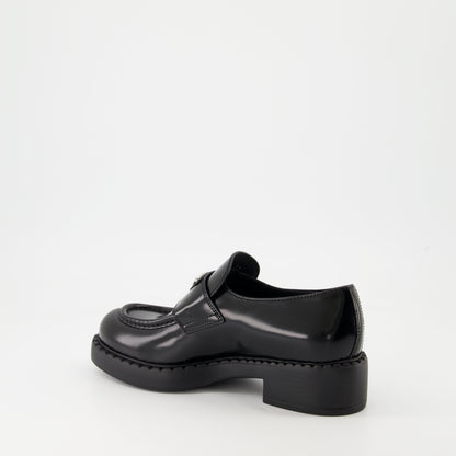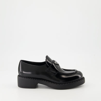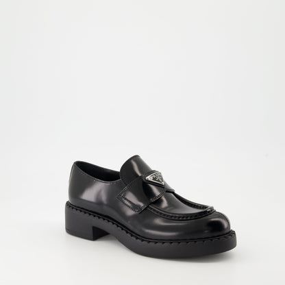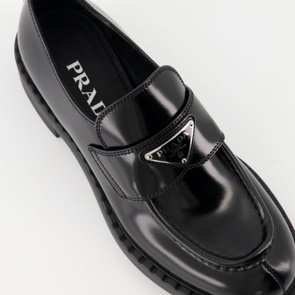 patent leather mocassins, luxury footwear, Prada AW24, black mocassins, elegant shoes