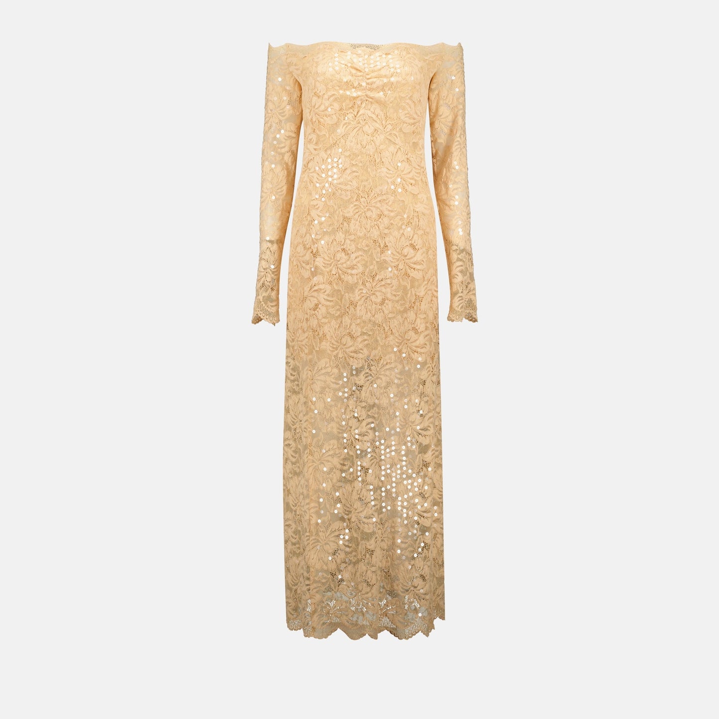 Rabanneの秋冬2024コレクションに含まれるラフィアのレースマキシドレスの時を超えたエレガンスを堪能してください。このドレスは、洗練されたバトーネックラインと長袖が美しく組み合わさり、繊細なレースのディテールを完璧に引き立てる控えめな魅力の傑作です。スタイルと快適さを無理なく調和させた、優雅なロングシルエットを強調するスリップオンデザインを特徴としています。ロゴタグが付いており、上質なポリアミド製で、詳細なレーストリムと裏地が施されたこの足首までの長さのドレスは、どんな特別な場面にも最適な控えめなエレガンスを体現します。