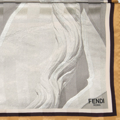 フェンディのシルクスカーフで芸術的なエレガンスを堪能してください。繊細なローマの彫像プリントで装飾されたスクエアフォルムは、時を超えた洗練さを感じさせます。贅沢なシルクで作られており、コントラストの効いたトリムと手巻きの縁取りが施されています。スタイルと品質の両方を保証し、どんな装いにも洗練されたアクセントを加えるのに最適で、この秋冬、控えめなエレガンスを求める方にとって理想的なアクセサリーの選択です。
