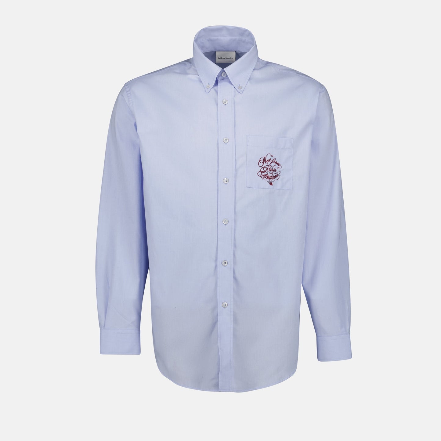 洗練されたセンスを持つ方のために丁寧に作られたスローガンシャツの控えめなエレガンスを発見してください。このDrôle de Monsieurの2025年春夏コレクションからの特別な一枚は、洗練されたブルーの色合いとクラシックなデザインでシンプルさとスタイルを体現しています。シャツは伝統的なカラー、長い袖、ストレートカットを特徴としており、快適さとスタイルを兼ね備えた現代的なフィット感を提供します。胸ポケットに施された刺繍ロゴが細部にわたるこだわりを示し、洗練さを加えています。高品質なコットンで作られており、柔らかさと通気性を確保しているため、フォーマルな場面やカジュアルな場面の両方に最適な選択肢です。