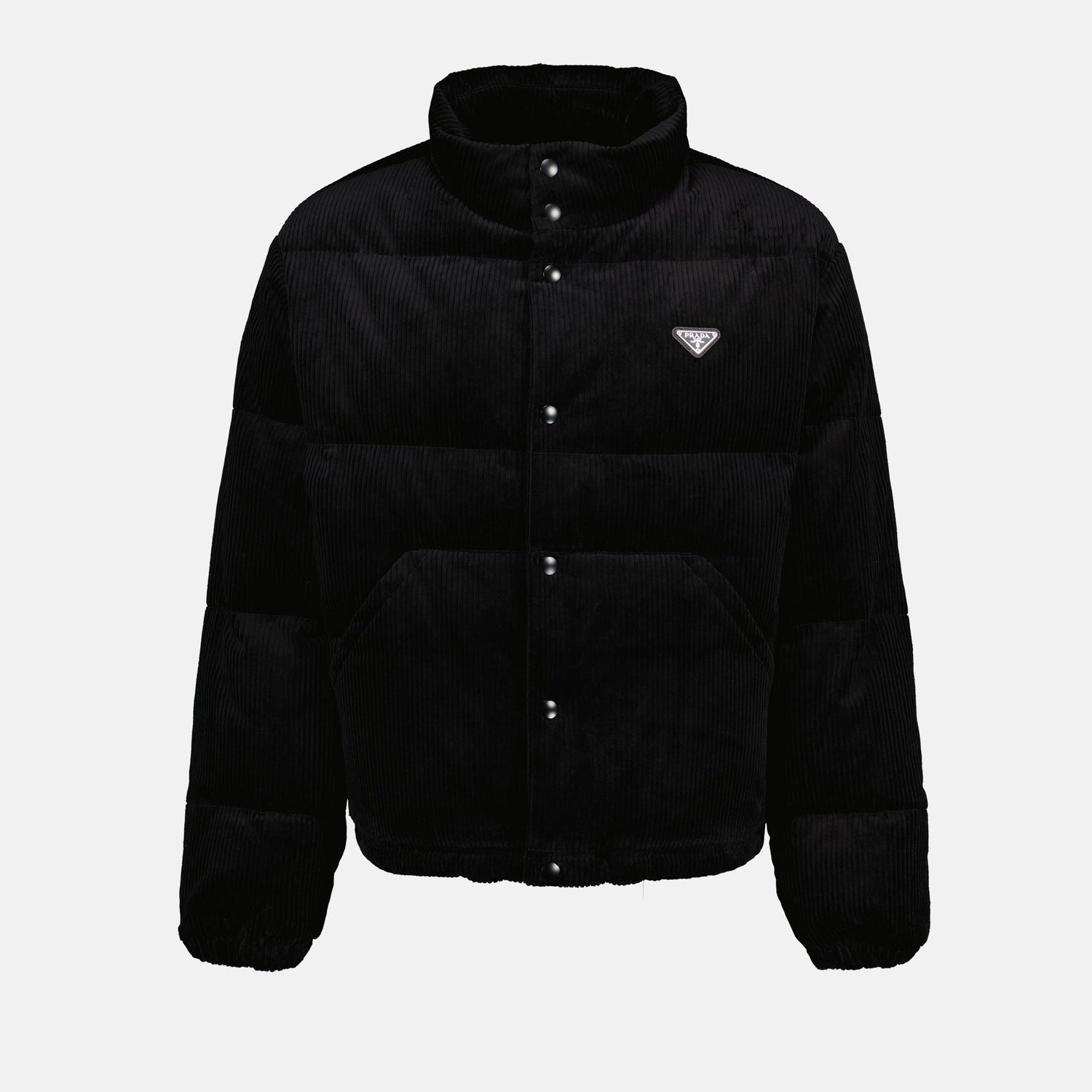 Prada jacket, padded logo jacket, black jacket, stand-up collar, luxury outerwear