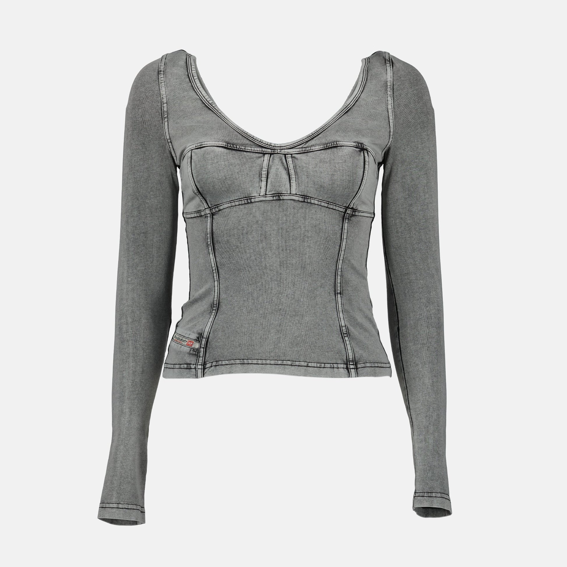 DieselのT-Elinデニムエフェクトトップで、 effortlessな洗練さを楽しんでください。この素敵なアイテムはスリムなシルエットでデザインされており、丸首に優雅に調和する長袖が特徴です。柔らかなコットンジャージーで作られ、現代的で多用途なウィッシュグレーの色合いを披露しています。革新的なブラのようなインサートがユニークさを加え、ワードローブに際立つアイテムとなります。ジーンズやスカートと合わせて完璧で、このトップはあらゆるシーンでスタイルを引き立てます。