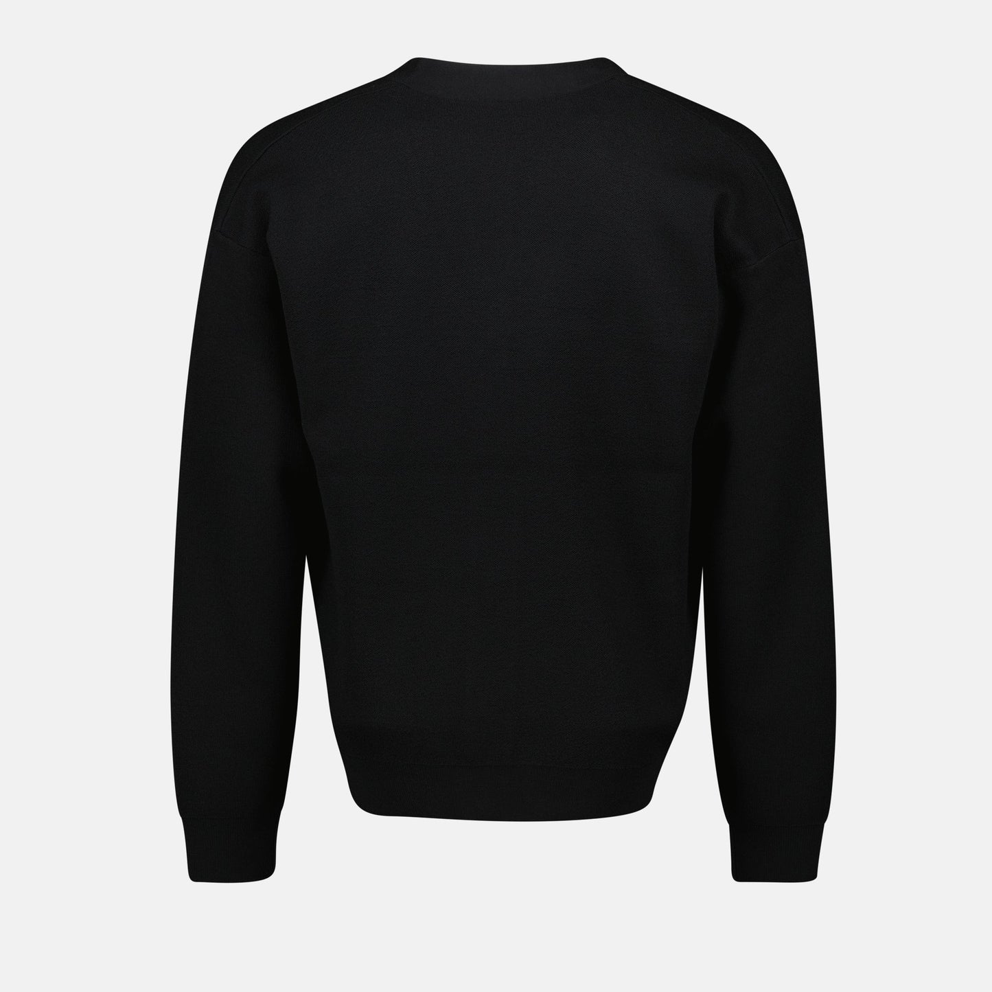 Drôle de Monsieurの春夏コレクションから、洗練されたエレガンスを持つブラックカーディガンをご紹介します。高品質のウールで作られたこのカーディガンは、ラウンドネックデザインと取り外し可能なロングスリーブを特色としており、あなたのワードローブに多様性を提供します。スリークなストレートカットとボタン留めは控えめな洗練さを加え、リブエッジと胸に施された刺繍ロゴが補完しています。ブラックの色合いは時代を超えた魅力を保証し、洗練されつつファッショナブルなルックを求める方に最適です。
