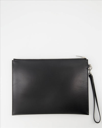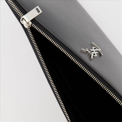 このエレガントなブラックYSLポーチで、iPadをスタイリッシュに保護しましょう。サンローランによるこのポーチは、最高品質のレザーで作られており、フロントにシルバーのメタルで飾られたアイコニックなYSLロゴが特徴です。内側は保護を最適化するためにライニングが施されており、タブレットがしっかりと固定されるように安全なジッパークロージャーが付いています。このラグジュアリーなスリーブは、現代的で洗練された男性にとって完璧な選択肢です。