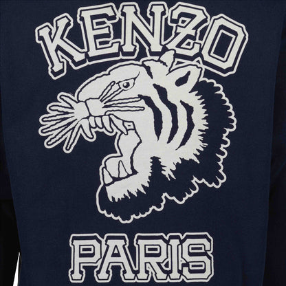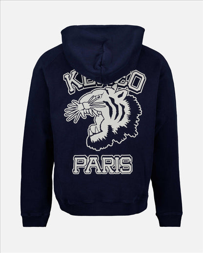 Kenzo Men's Sweatshirt, Blue Hoodie, Kenzo Varsity, Cotton Hooded Sweatshirt, Luxury for Men